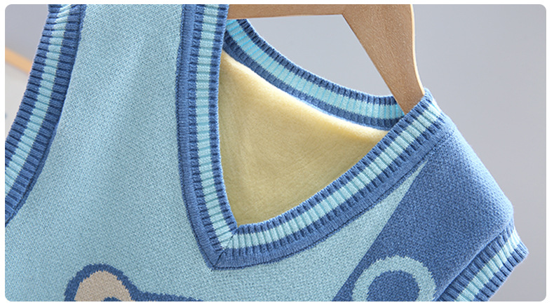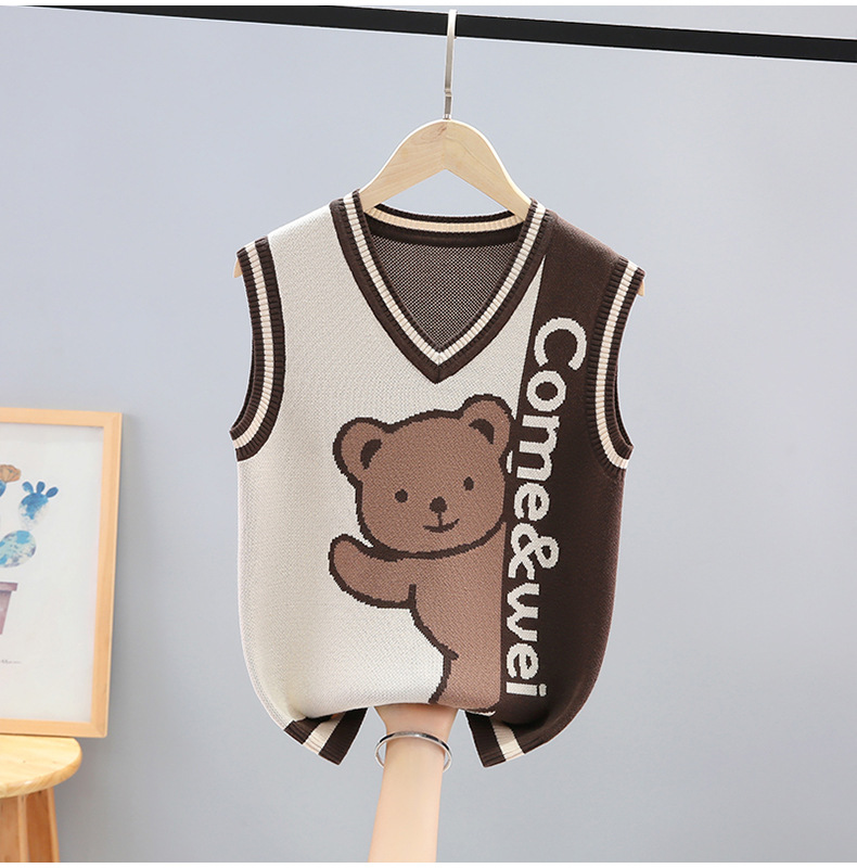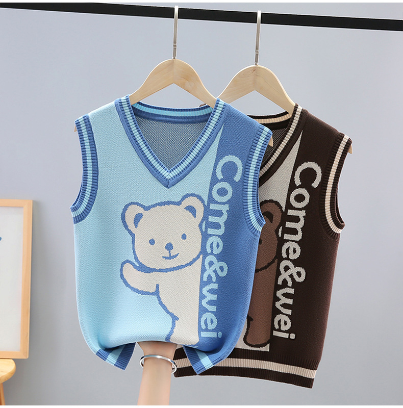소년 조끼 면화 조끼 봄과 가을 어린이 가을 겨울 기모 두꺼운 허리 코트 중 및 대형 어린이 만화 곰 니트웨어스토어 가기