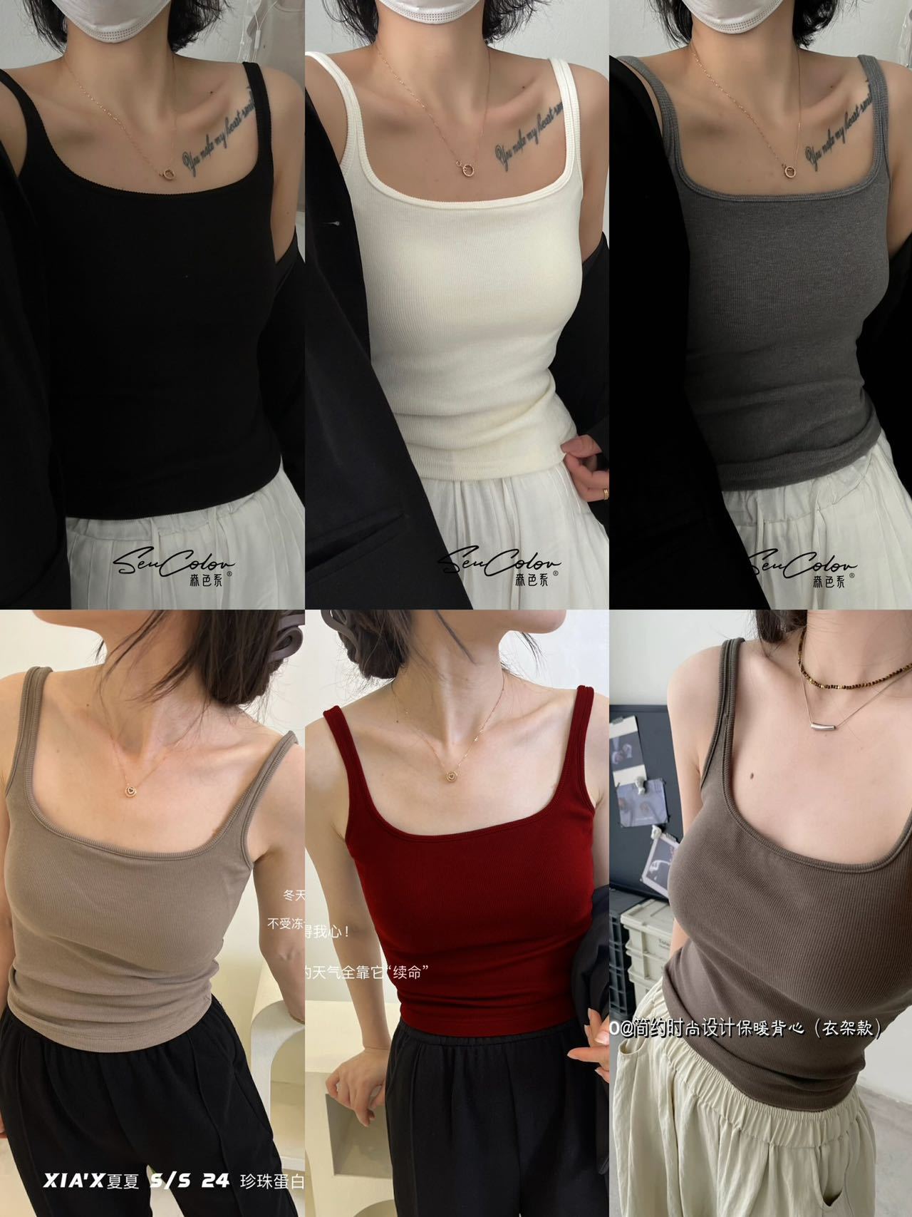 1080 # 가슴 패드와 슬리밍 스퀘어 넥 샌딩 여성 슬림 슬리밍 올 매치 탄성 내부 카미 솔베이스 조끼스토어 가기