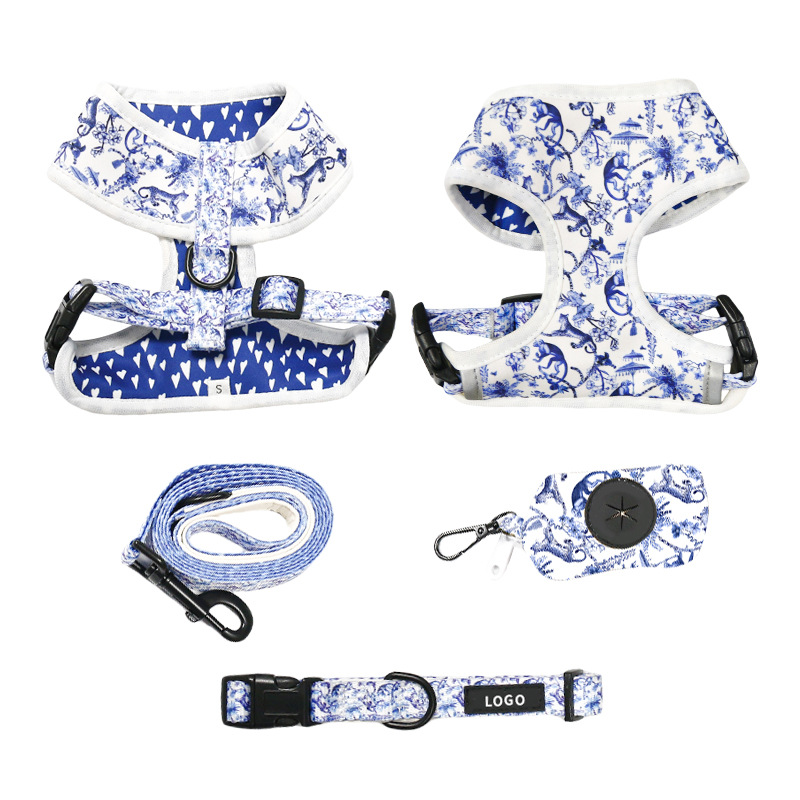 새로운 애완 동물 가슴 끈 세트 위장 개 가슴 끈 4 피스 애완 동물 가죽 끈은 사용자 정의 패턴 수 있습니다