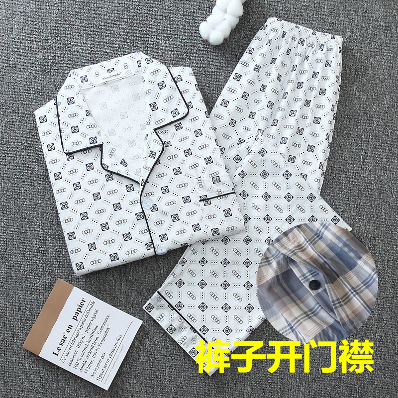 902 남자 가을과 겨울 잠옷 봄과 여름 모조 면화 긴 소매 라켓 오줌 입 남성용 얇은 가정용 의류 세트스토어 가기