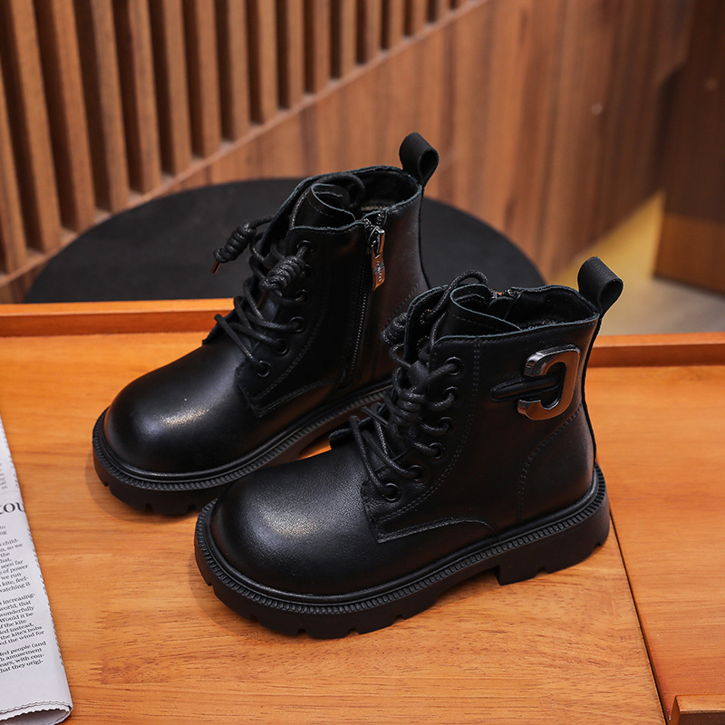 여아용 마틴 부츠 2025 가을 겨울 신상품 플러스 벨벳 가죽 부츠 중대형 어린이용 천연 가죽 남아용 숏부츠 아동용 신발 부츠스토어 가기