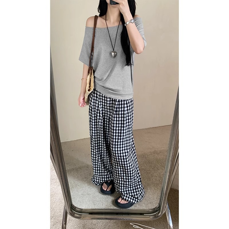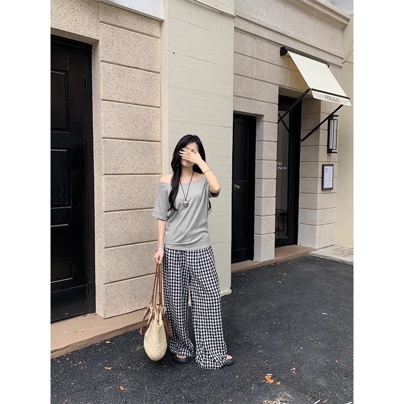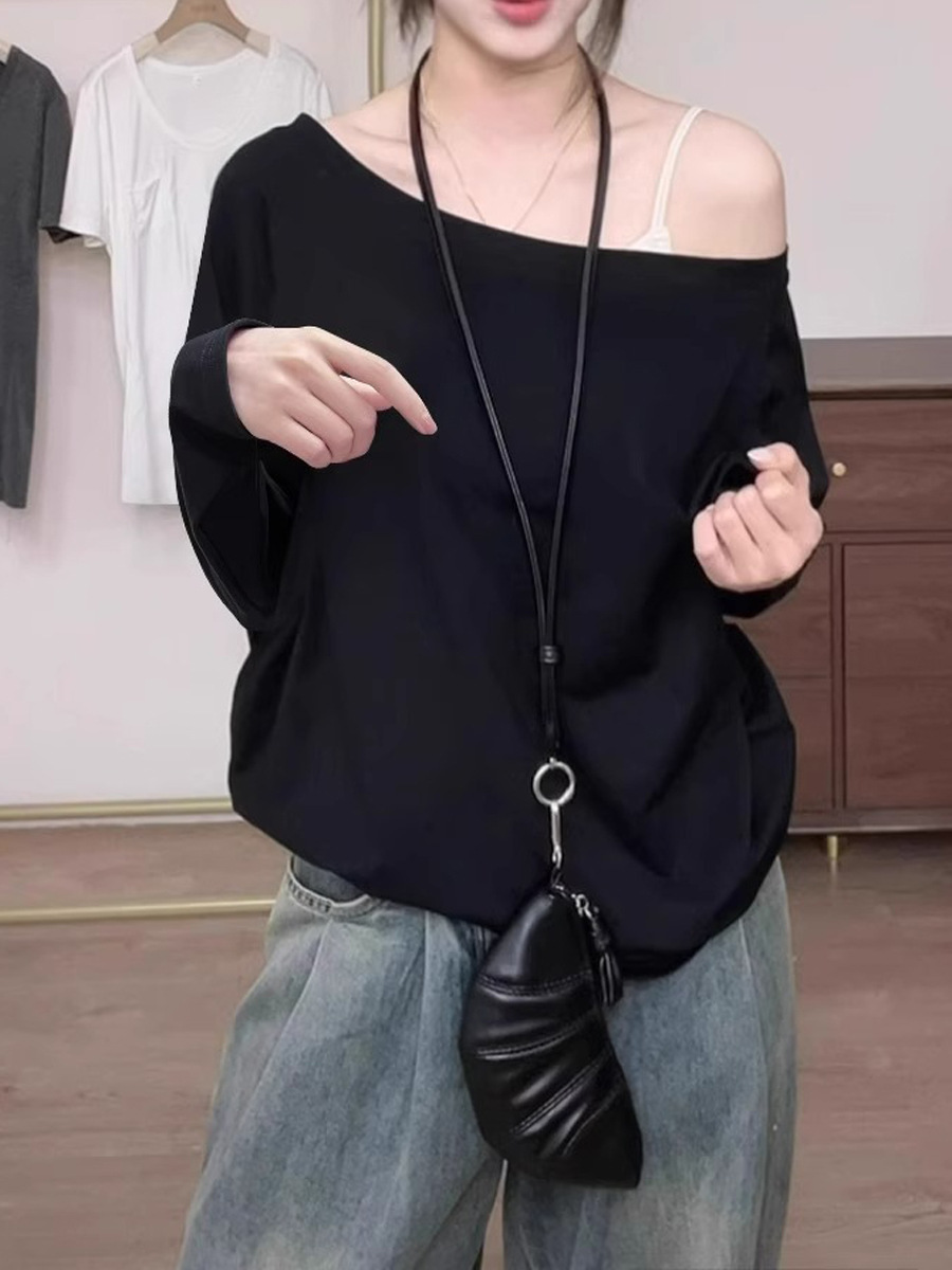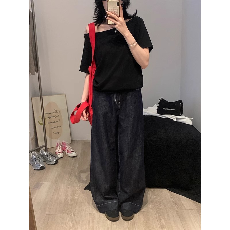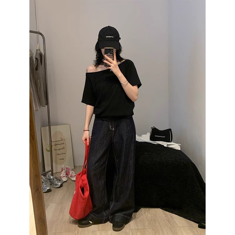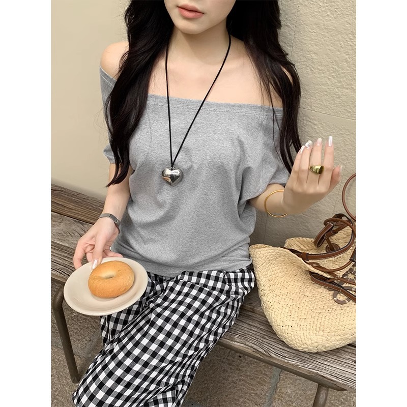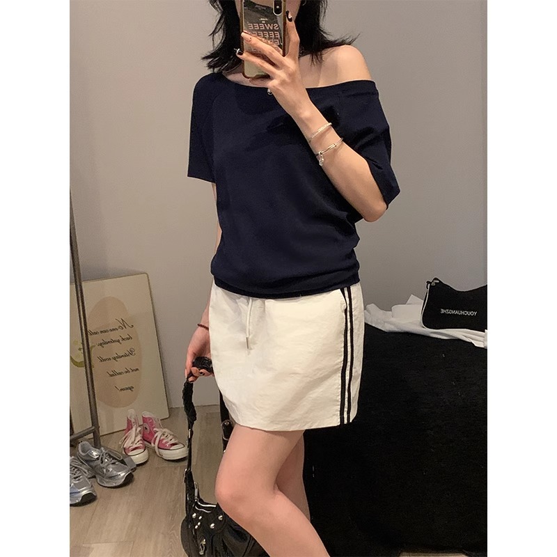 한국 스타일 스파이스 걸스 순수한 욕망 반팔 티셔츠 여성 여름 디자인 센스 틈새 느슨한 게으른 섹시한 어깨 탑