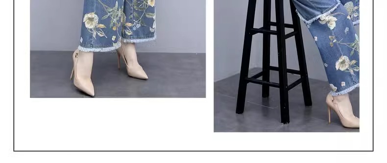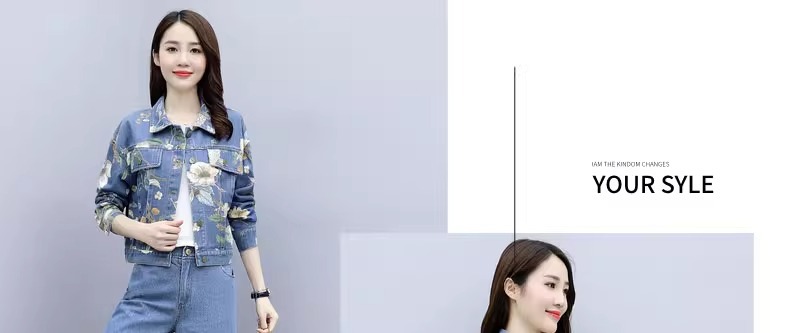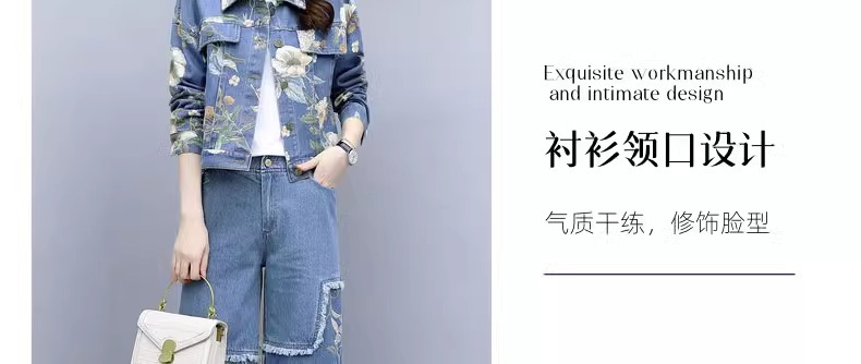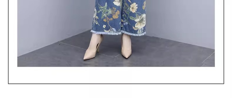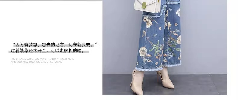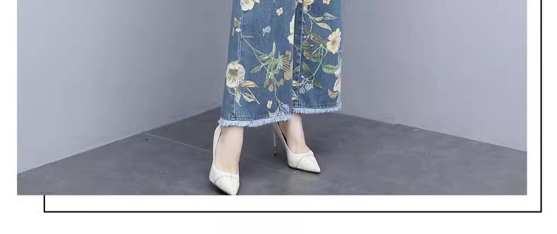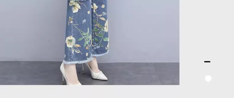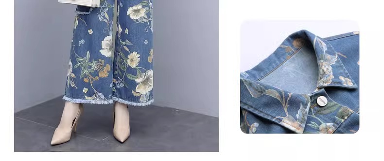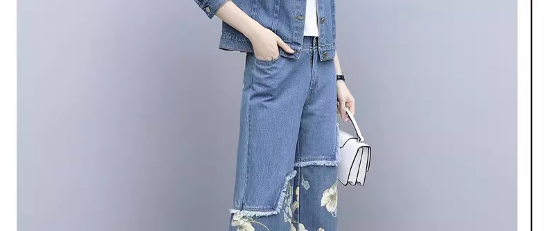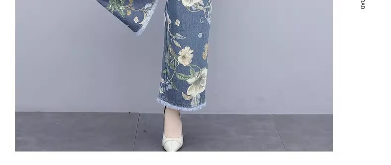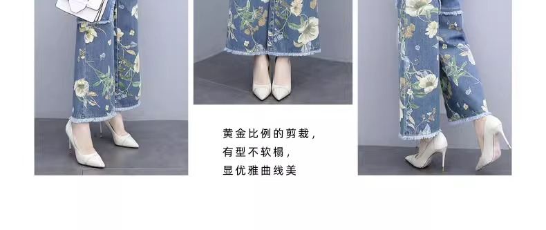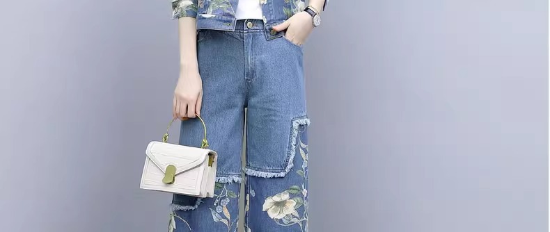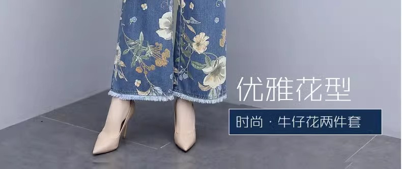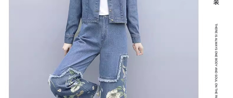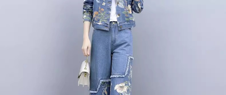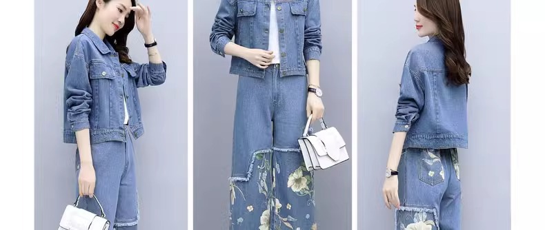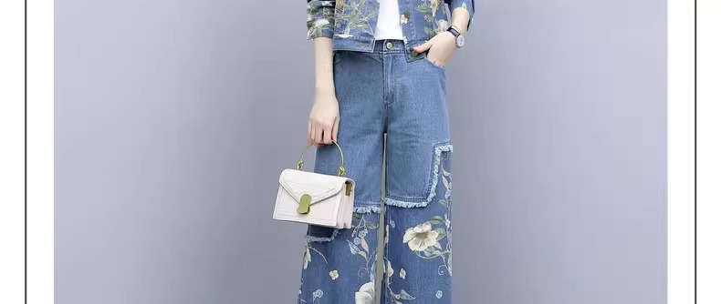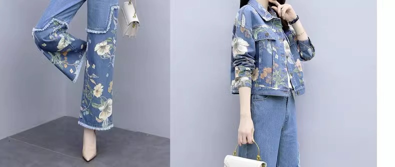 봄과 가을 캐주얼 전문 패션 세트 2024 새로운 여성 서양식 슬림 데님 넓은 다리 바지 투피스 세트스토어 가기
