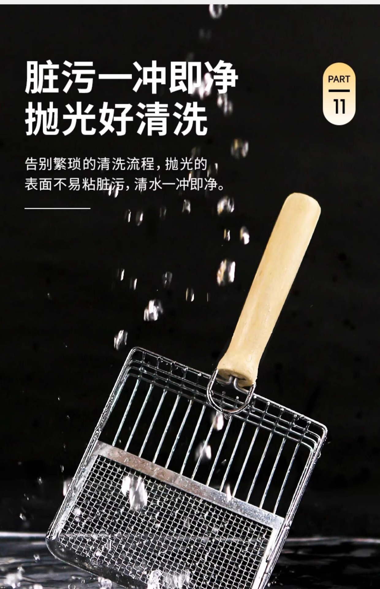 • 6세대 고양이 쓰레기 국자-그물 실버-나무 손잡이 모델