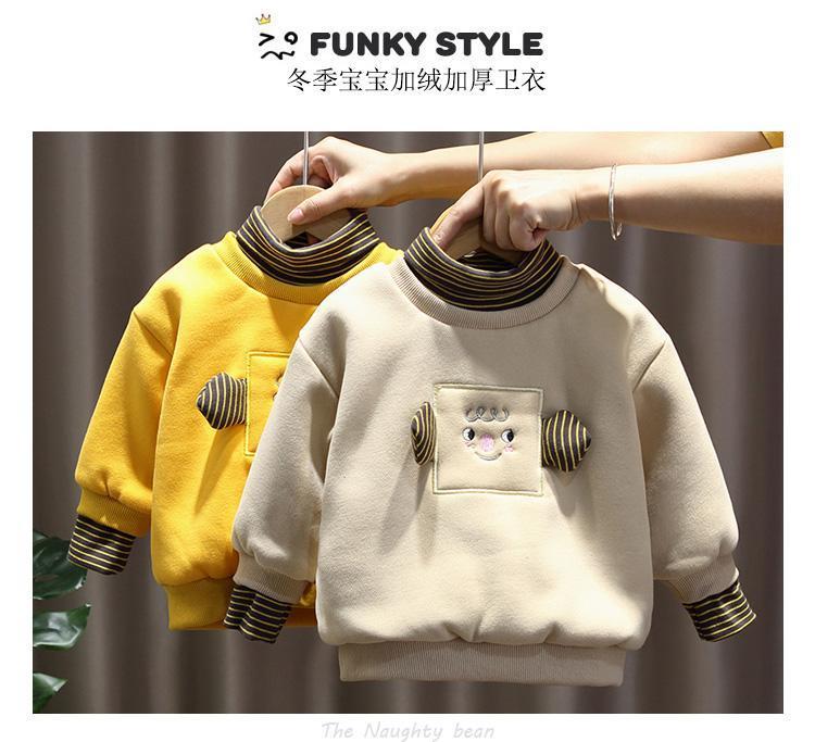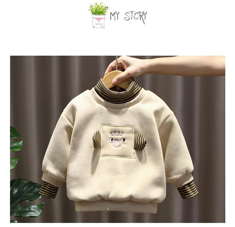 아기의 기모 두꺼운 스웨터 2024 뉴 보이즈 반 높이 칼라 보텀 셔츠 가을과 겨울 아기의 조수스토어 가기