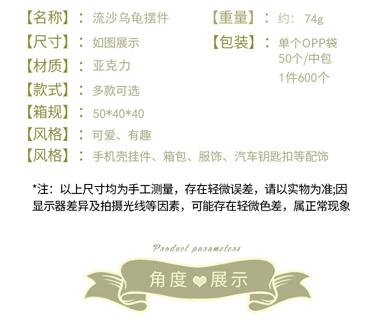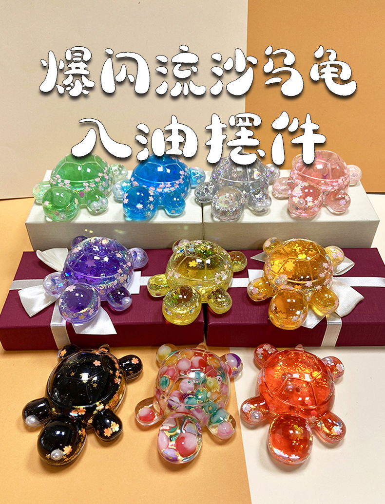 인터넷 유명인 틱톡 모래시계 키체인 오일 대형 거북이 장식품 반짝이는 소품 블라인드백 야시장 판매 선물