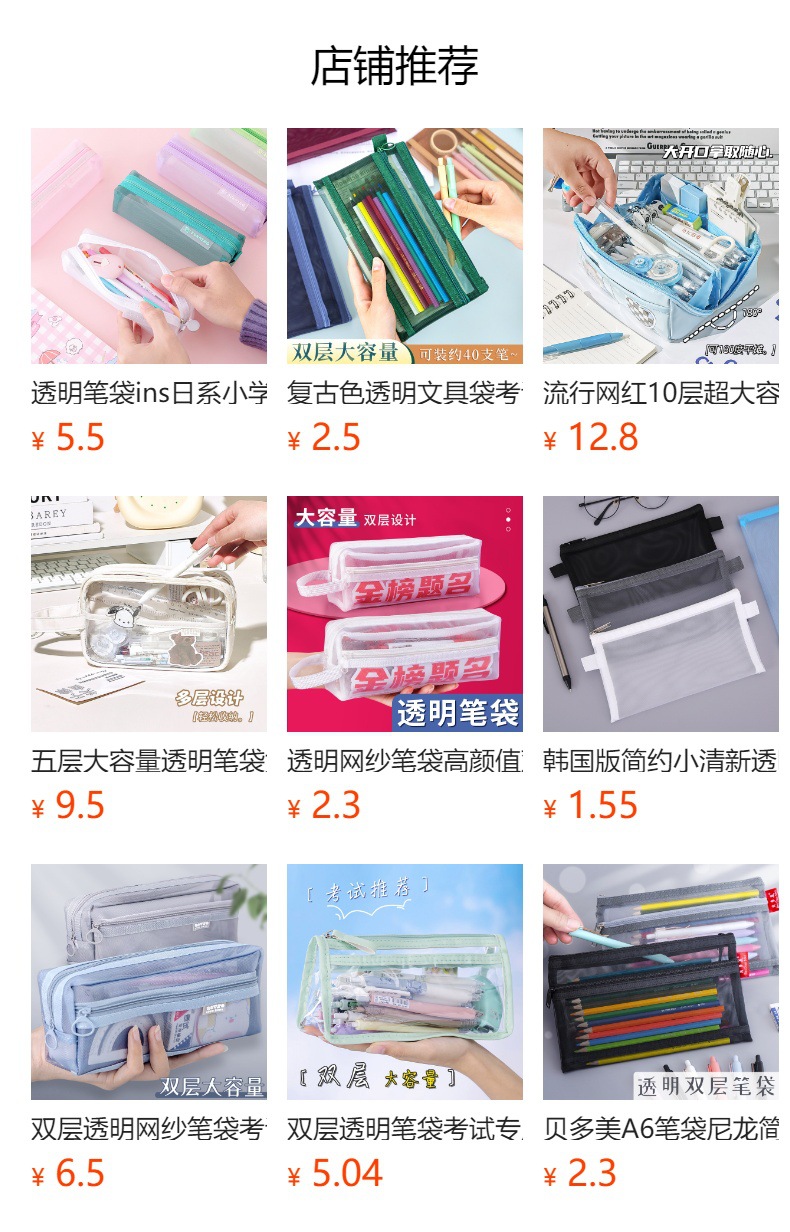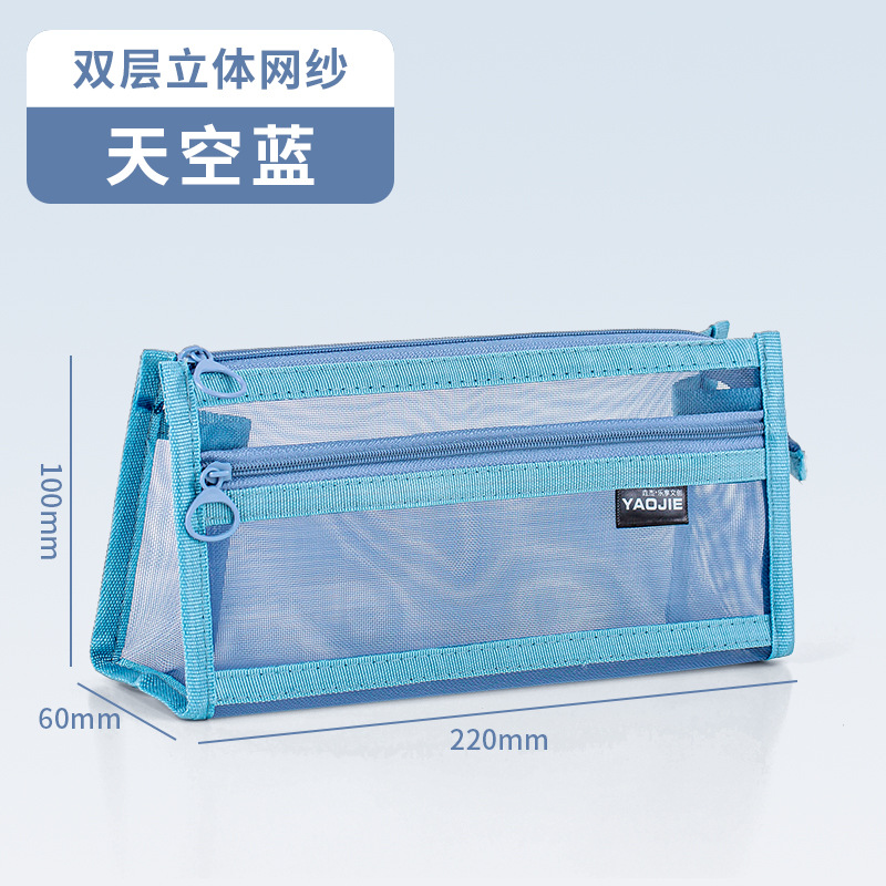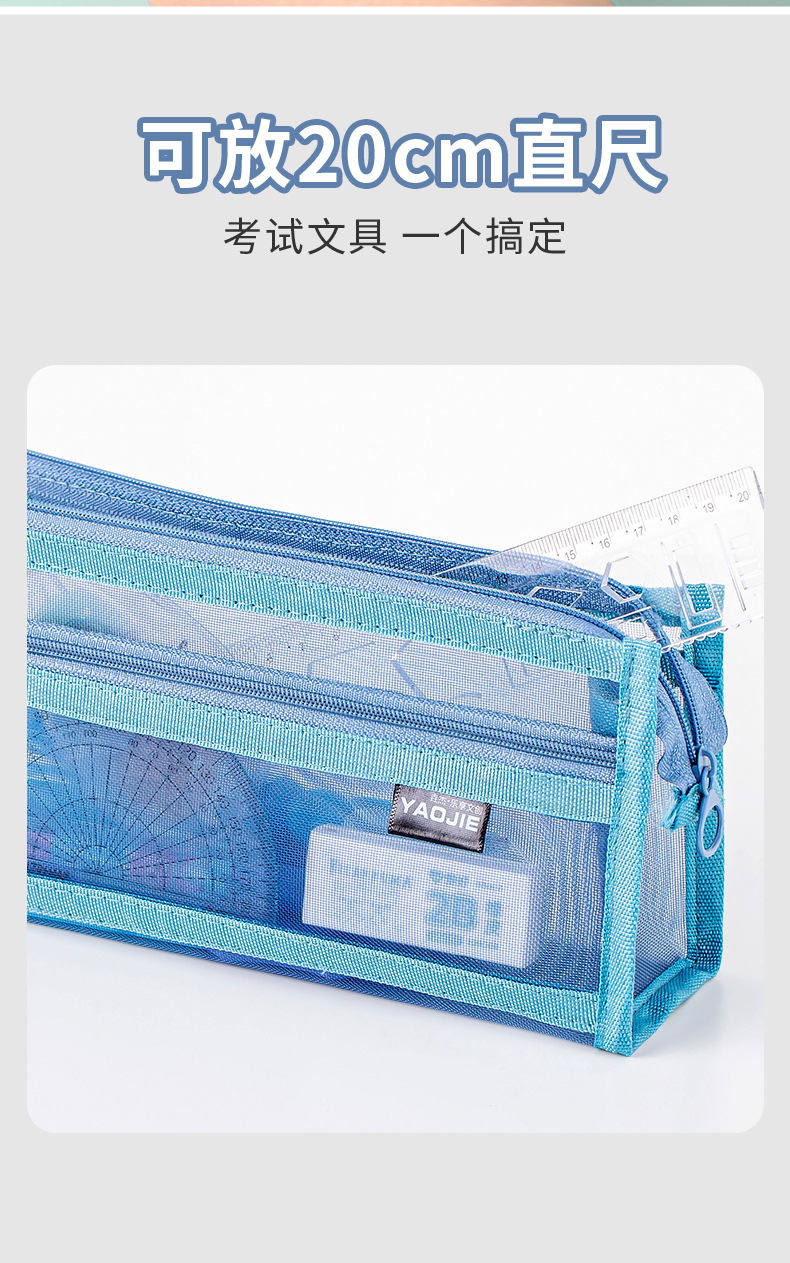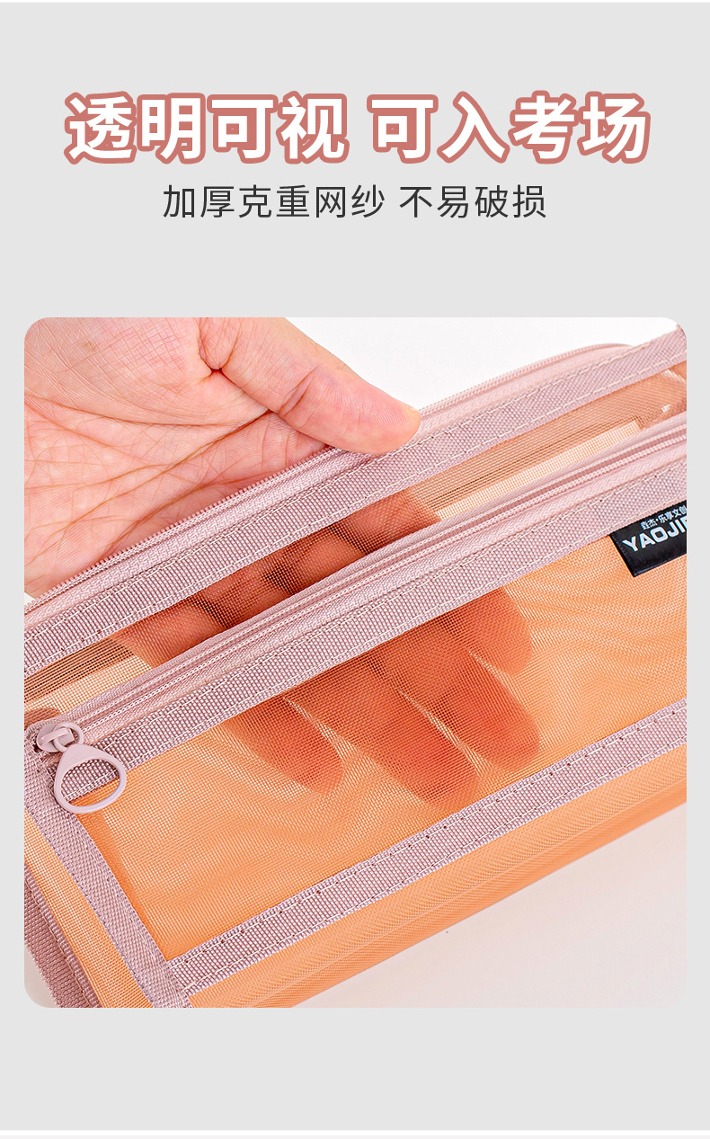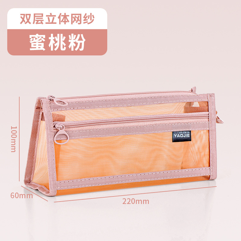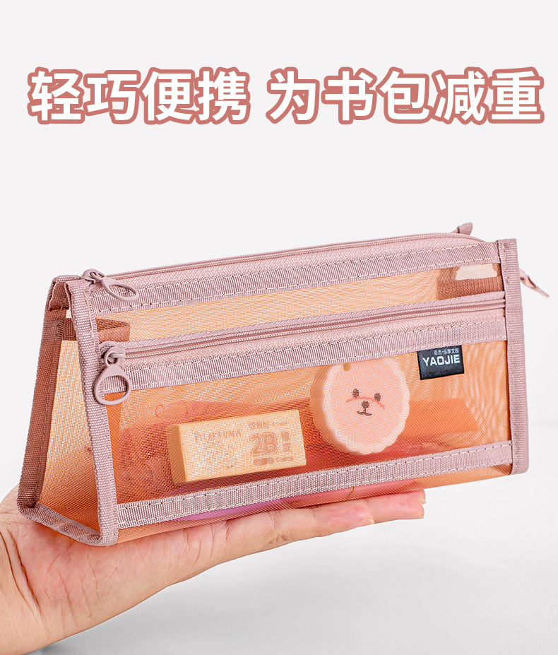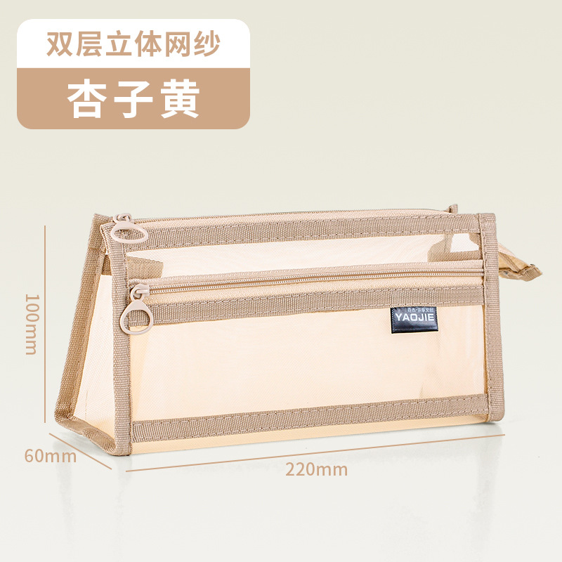Morandi 연필 케이스 Ins 스타일 간단한 투명 메쉬 더블 레이어 대용량 학생 시험 지퍼 문구 보관 가방스토어 가기