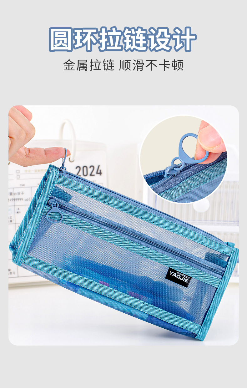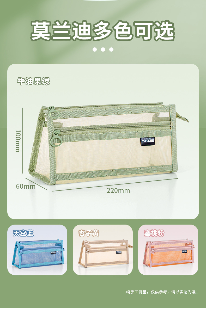 Morandi 연필 케이스 Ins 스타일 간단한 투명 메쉬 더블 레이어 대용량 학생 시험 지퍼 문구 보관 가방