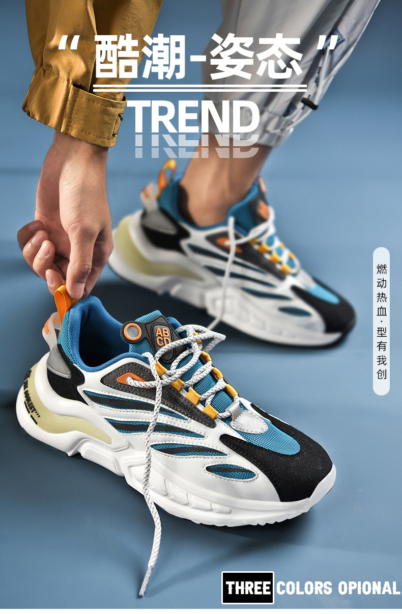 여름과 가을 남성 운동화 두꺼운 밑창 색상 일치 패션 남성 신발 제조 업체 도매 빛나는 밑창 경량 통기성 대형 신발