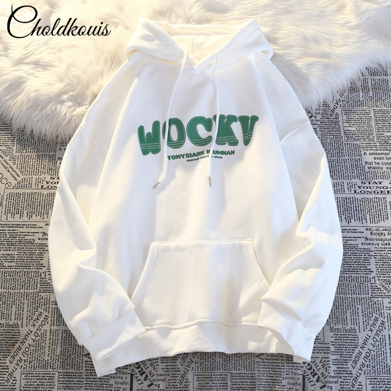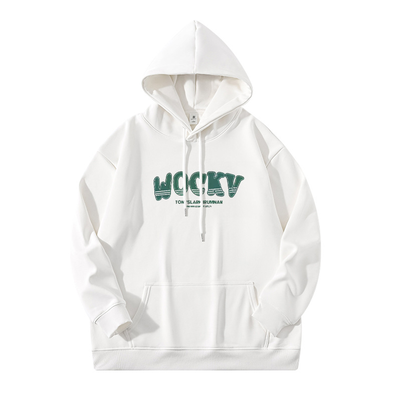• 화이트 후드 스웨트셔츠 플러스 플리스-8546【GL】