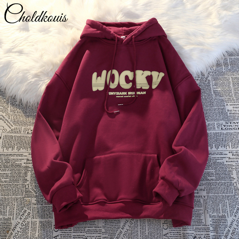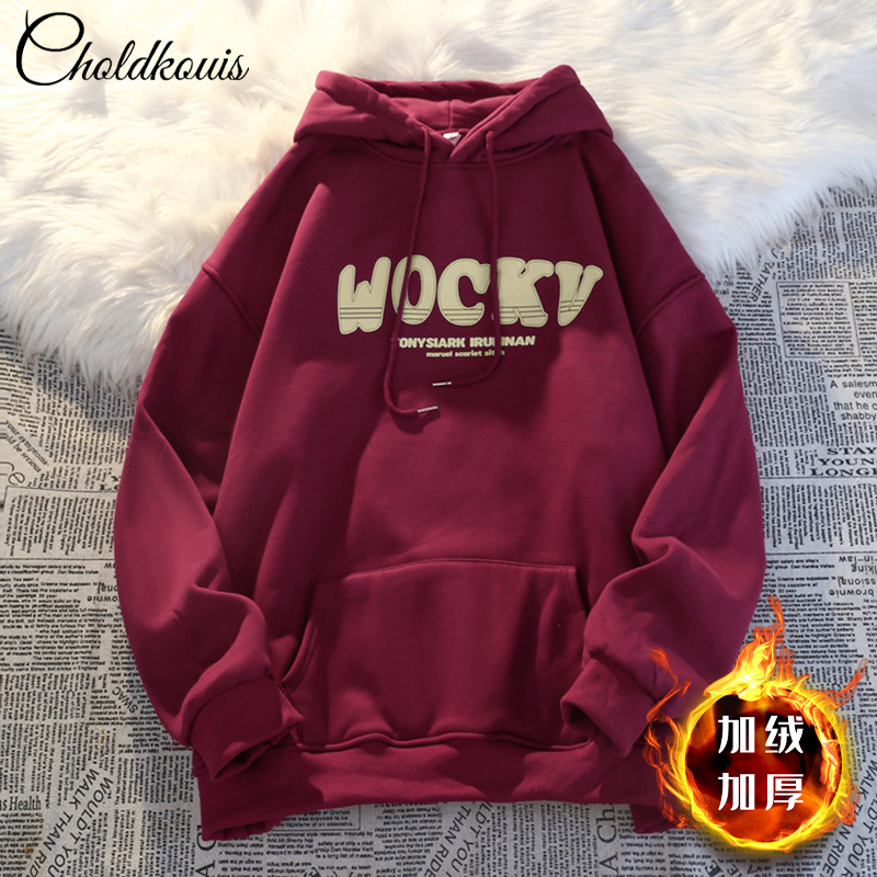 • 버건디 후드 스웨트셔츠 플러스 플리스-8546【GL】