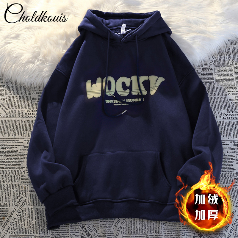 • 네이비블루후드스웨터+벨벳스타일-8546【GL】
