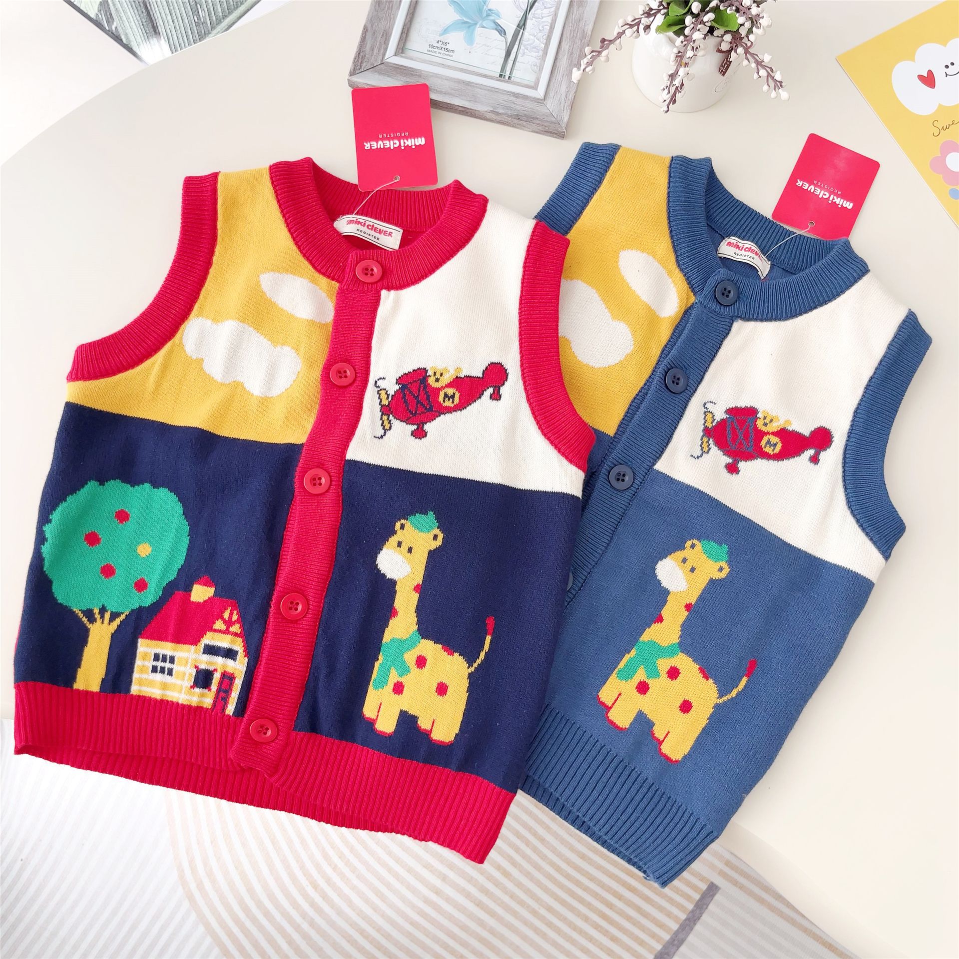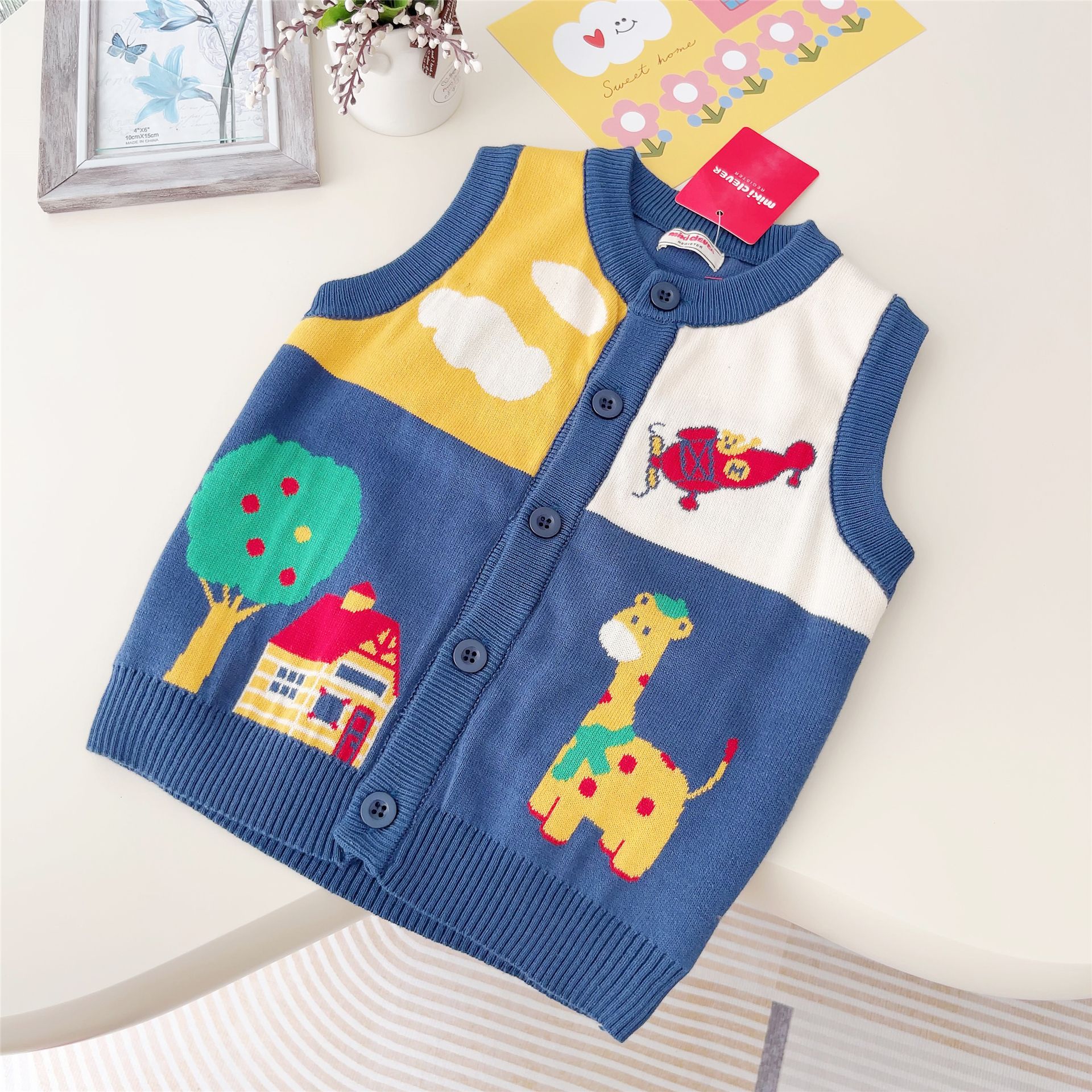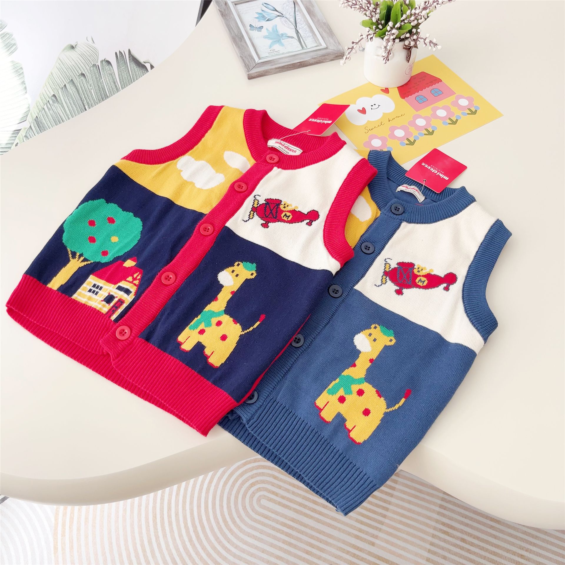일본 대외 무역 어린이 조끼 24 가을 및 겨울 새 소년 소녀 항공기 Fawn 스웨터 조끼 외부 착용 외부 착용 2307스토어 가기