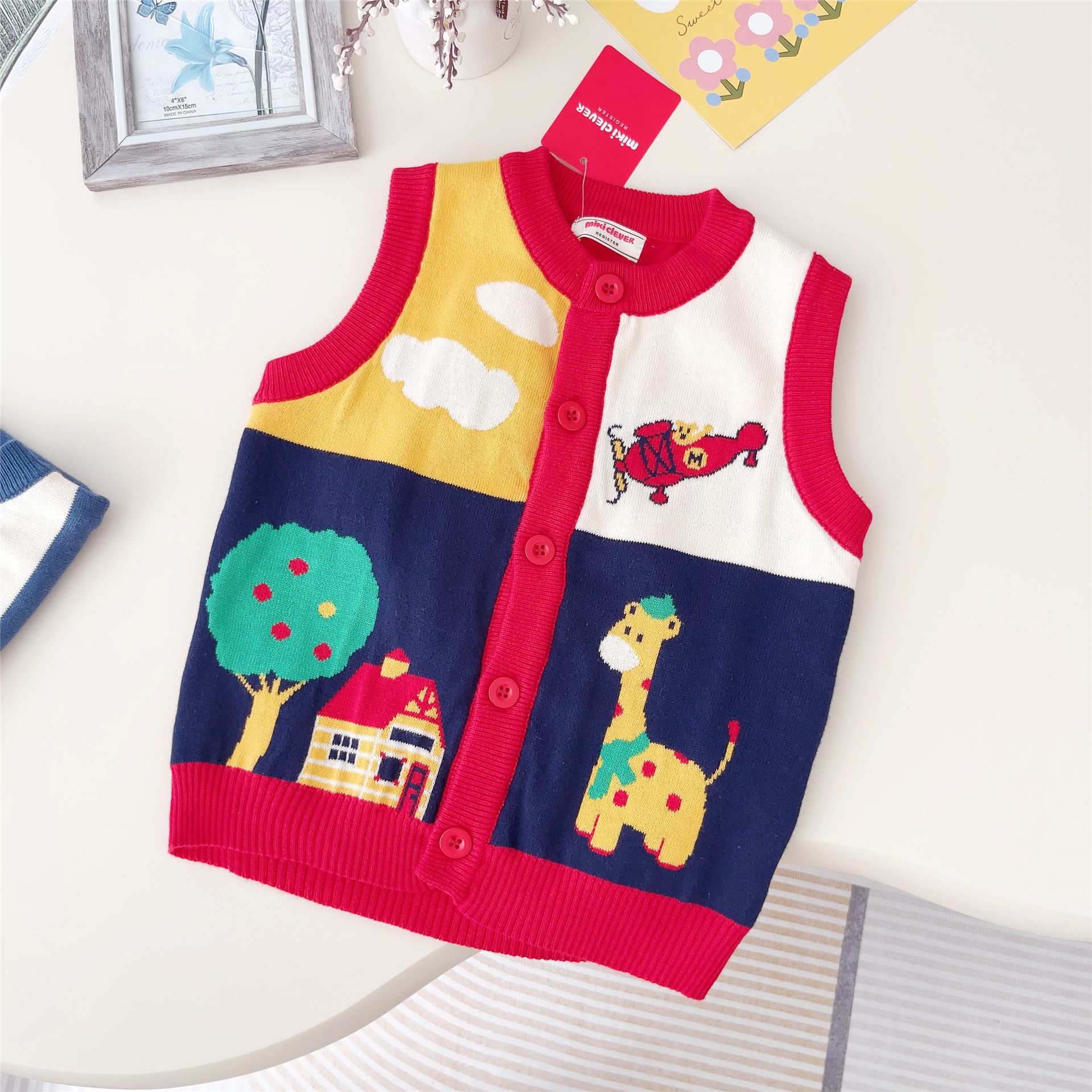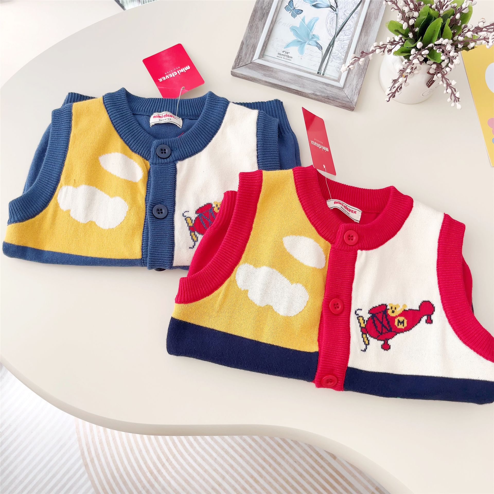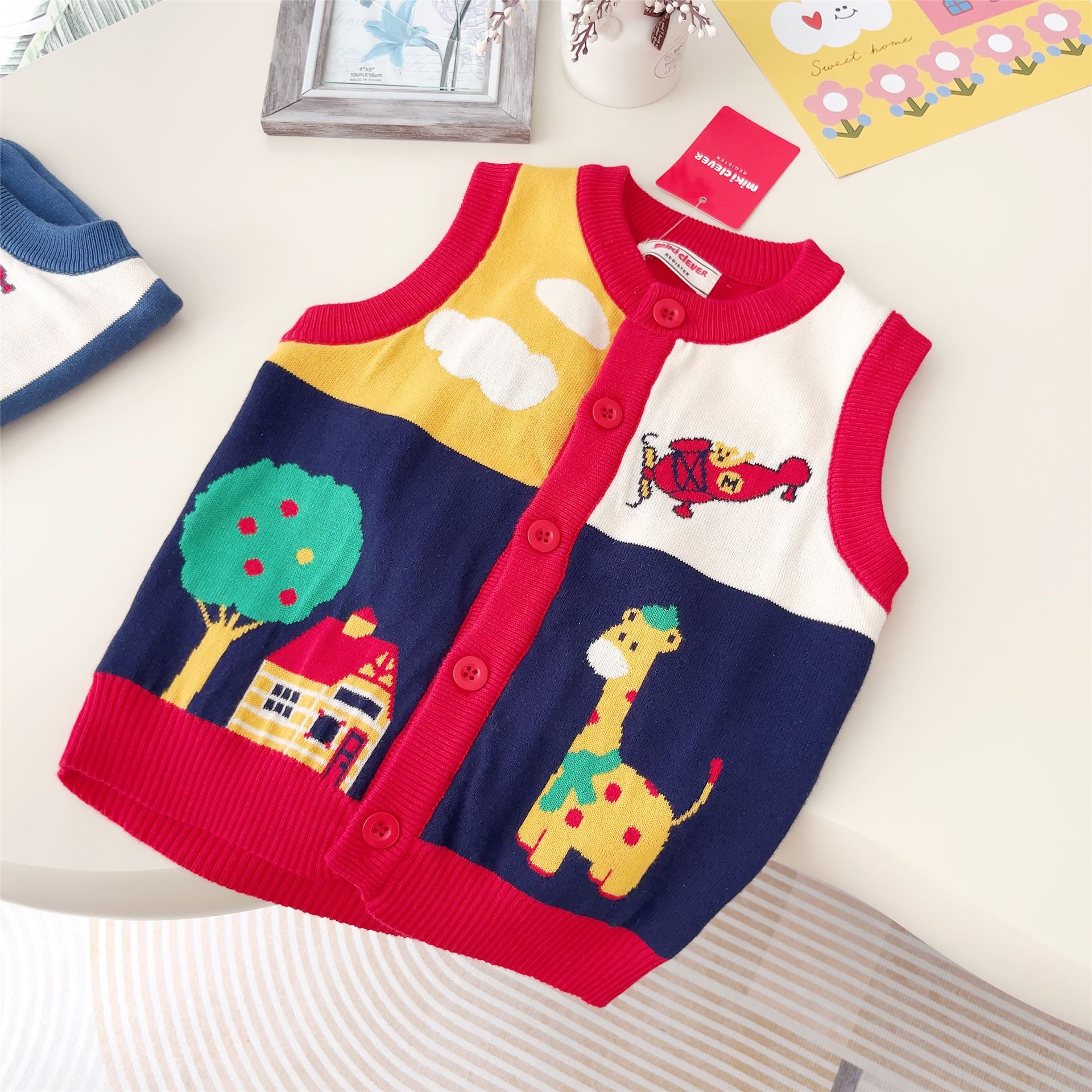 일본 대외 무역 어린이 조끼 24 가을 및 겨울 새 소년 소녀 항공기 Fawn 스웨터 조끼 외부 착용 외부 착용 2307스토어 가기