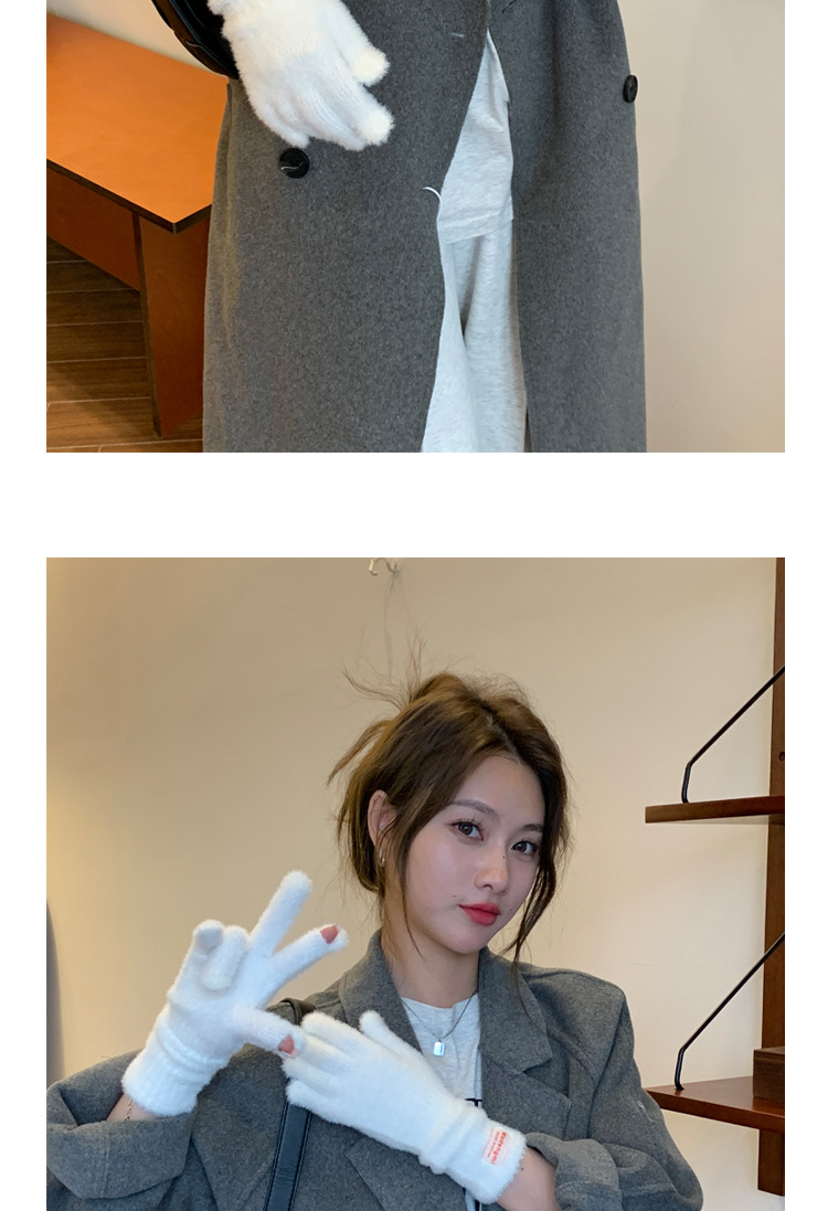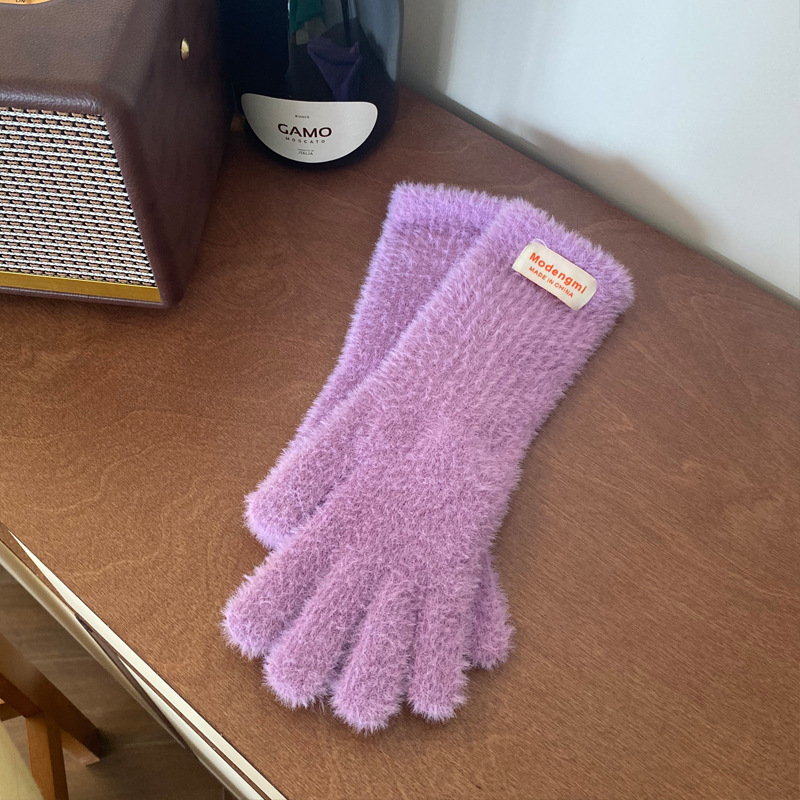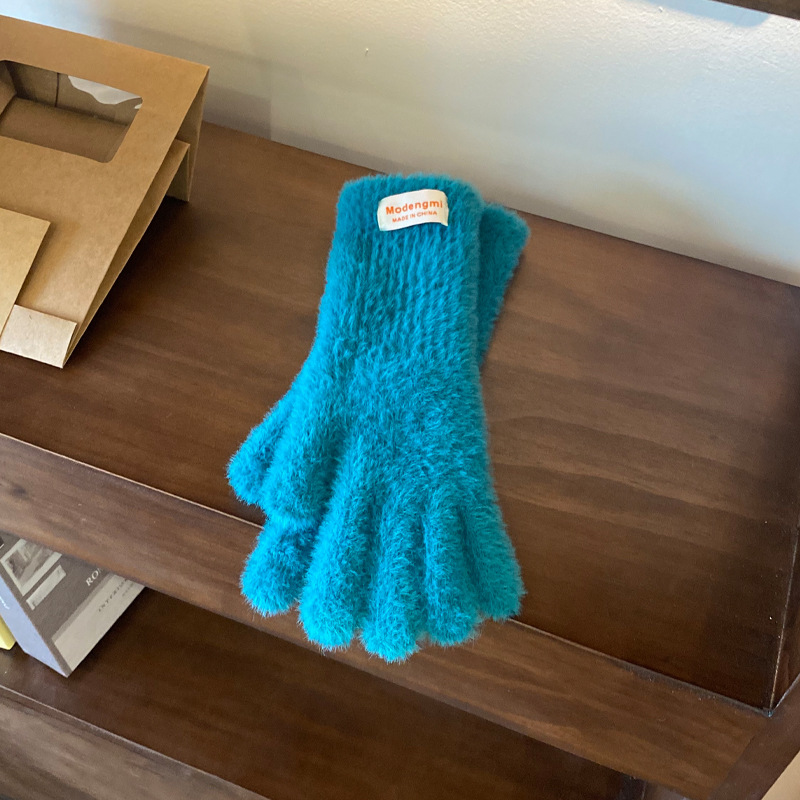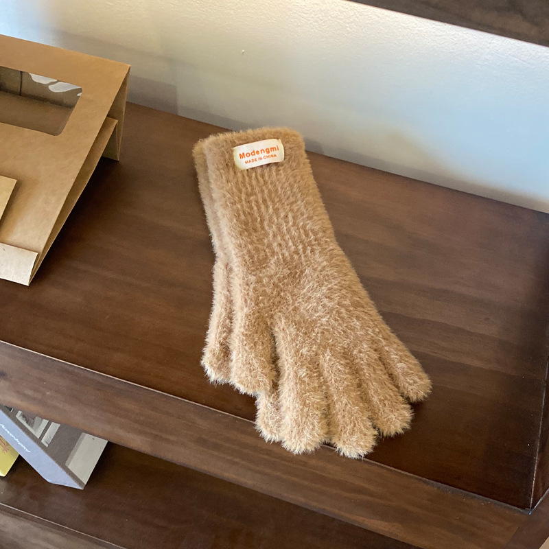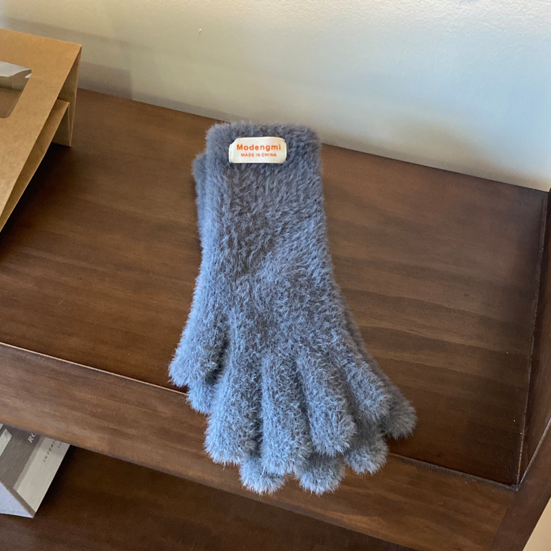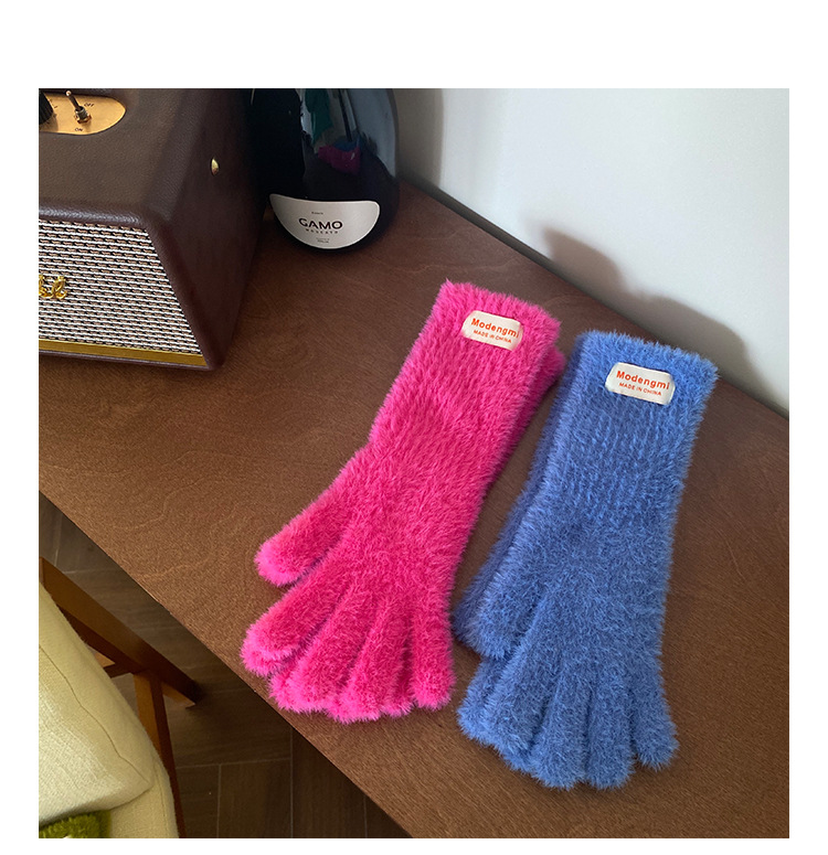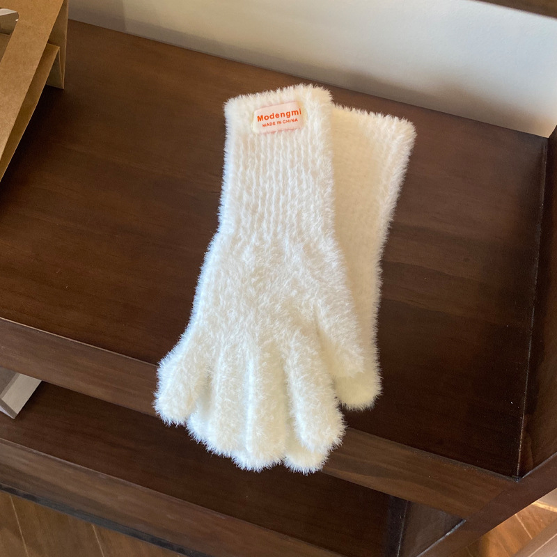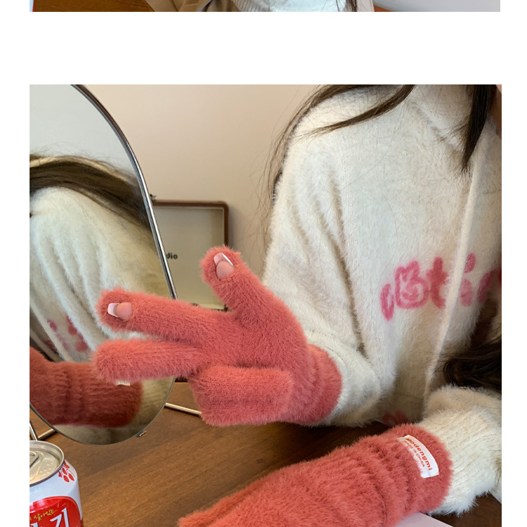 韩版软糯兔毛绒针织羊绒手套高级感ins保暖露指防寒冬季五指手套