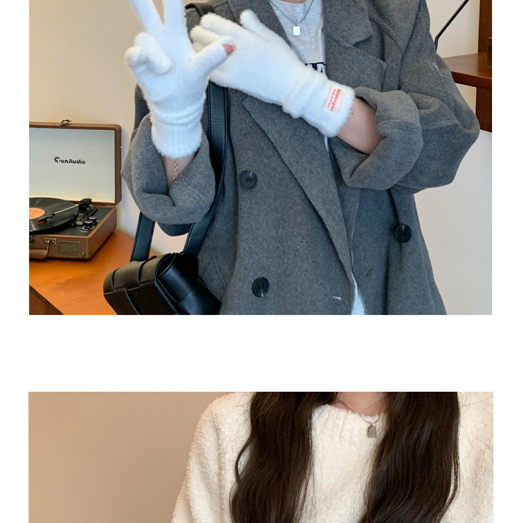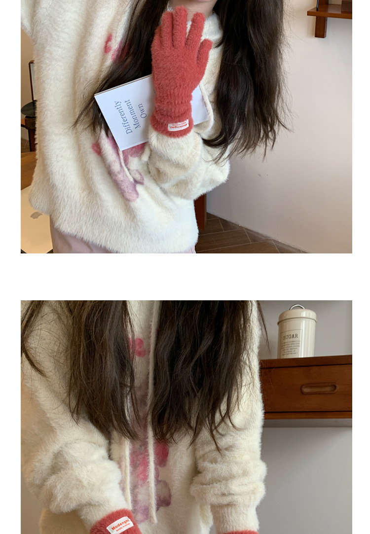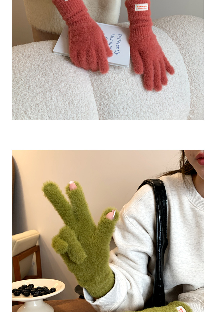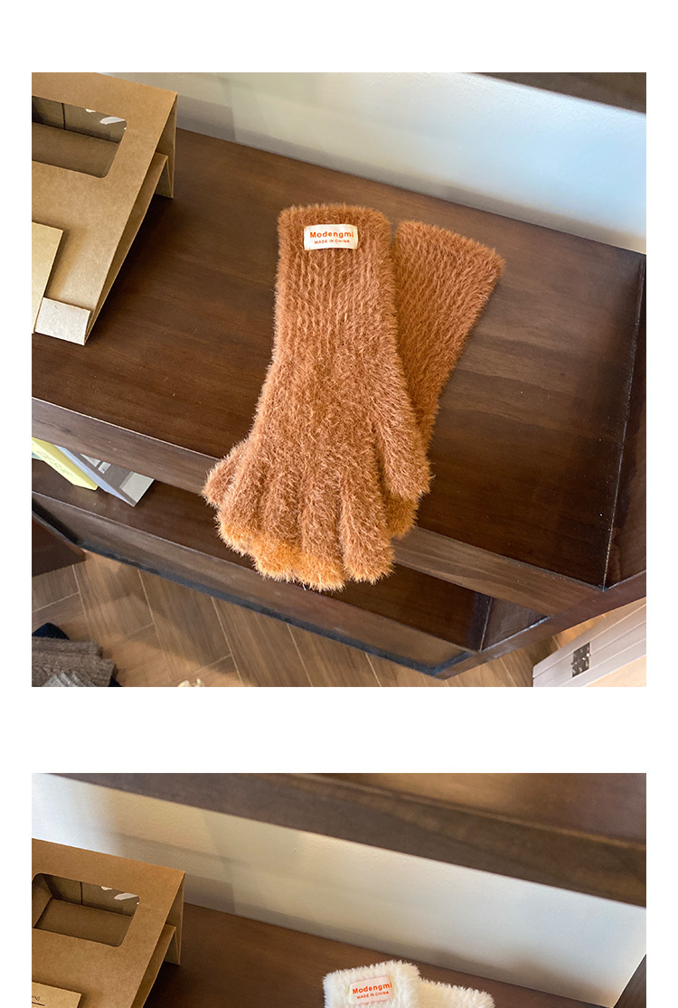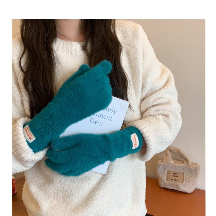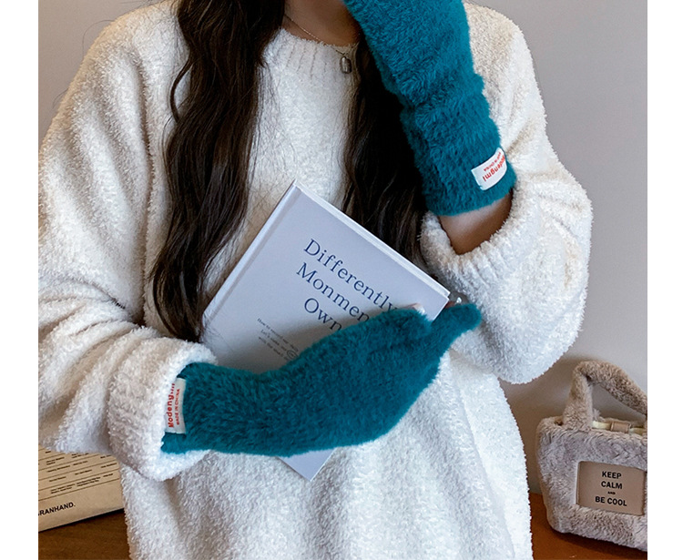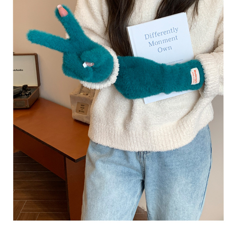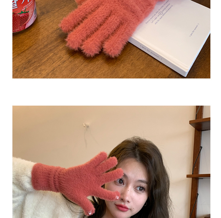 韩版软糯兔毛绒针织羊绒手套高级感ins保暖露指防寒冬季五指手套