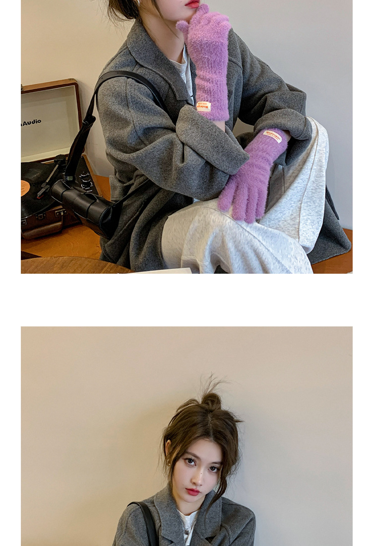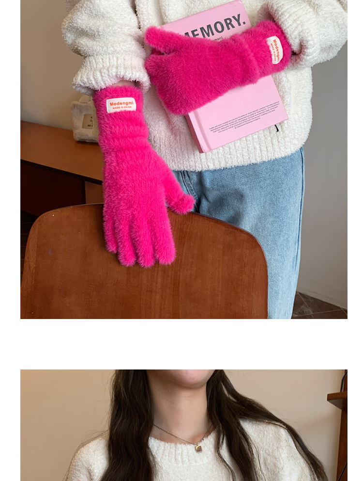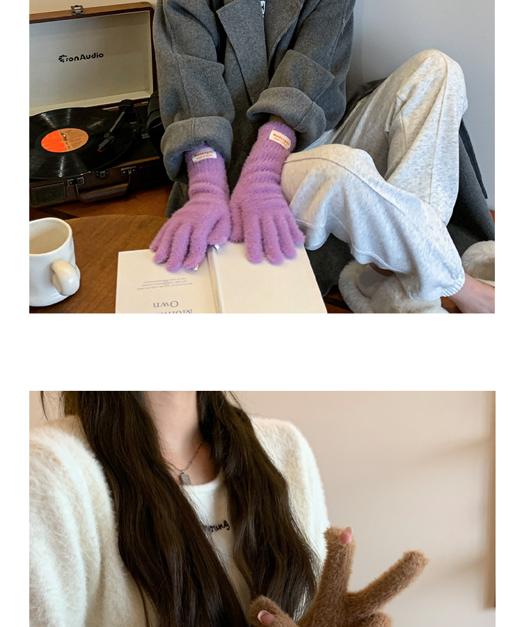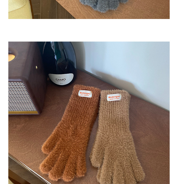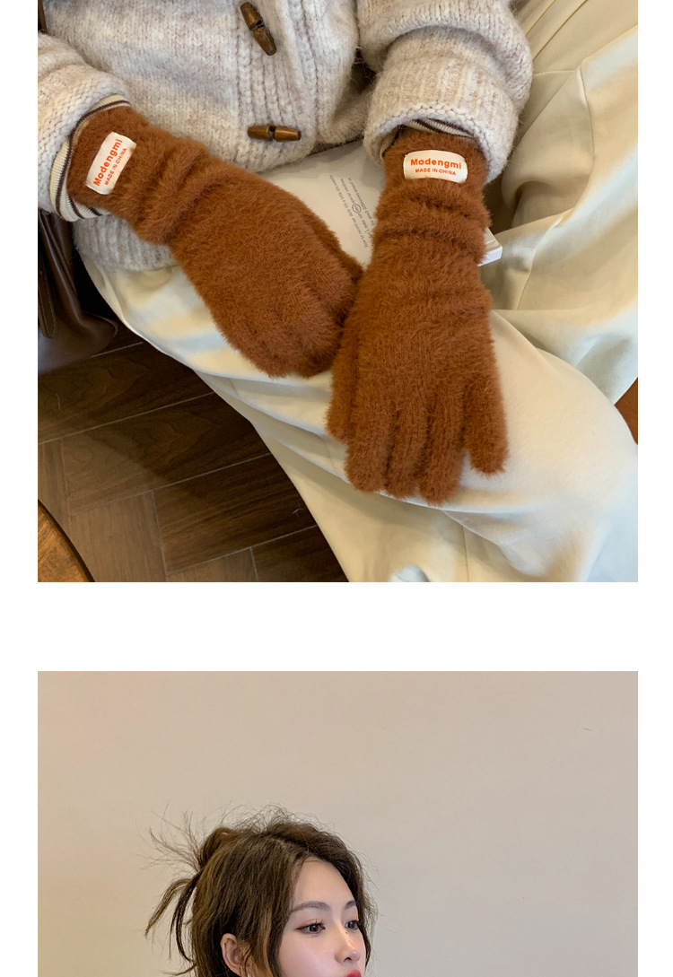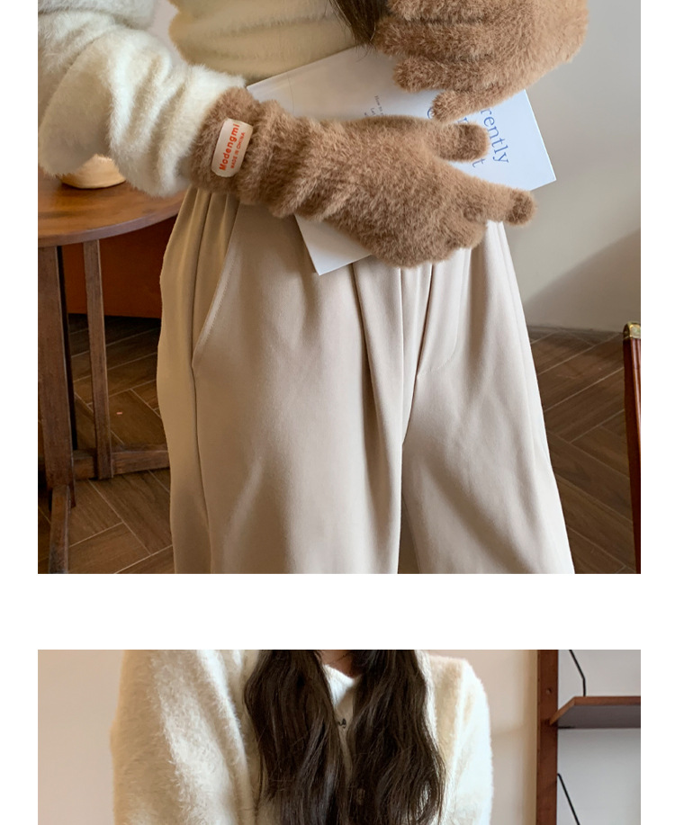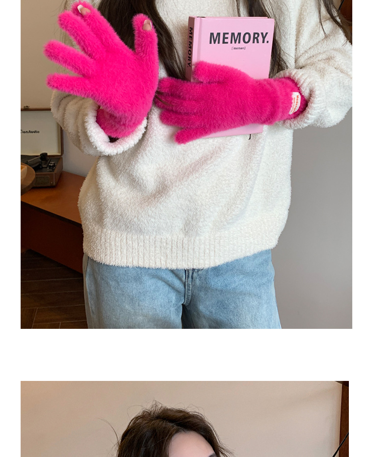 韩版软糯兔毛绒针织羊绒手套高级感ins保暖露指防寒冬季五指手套
