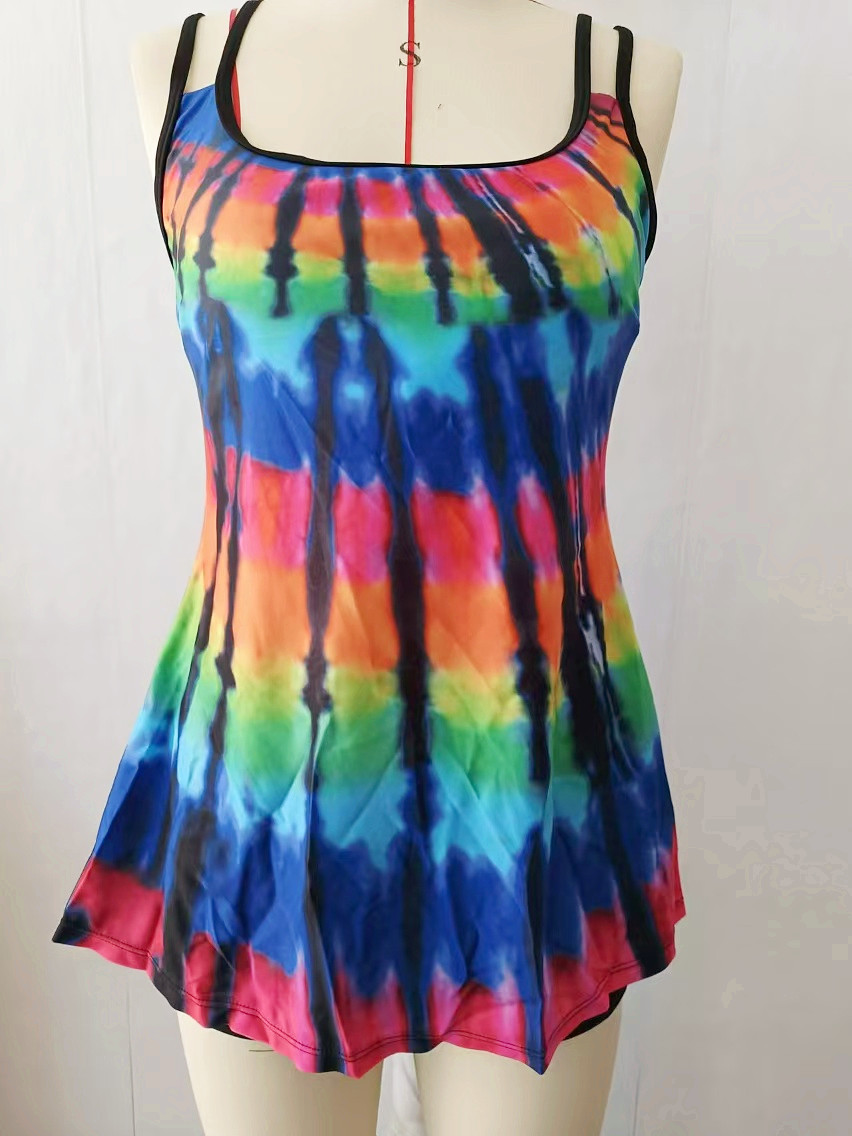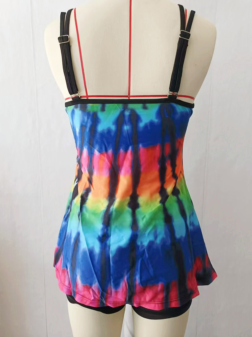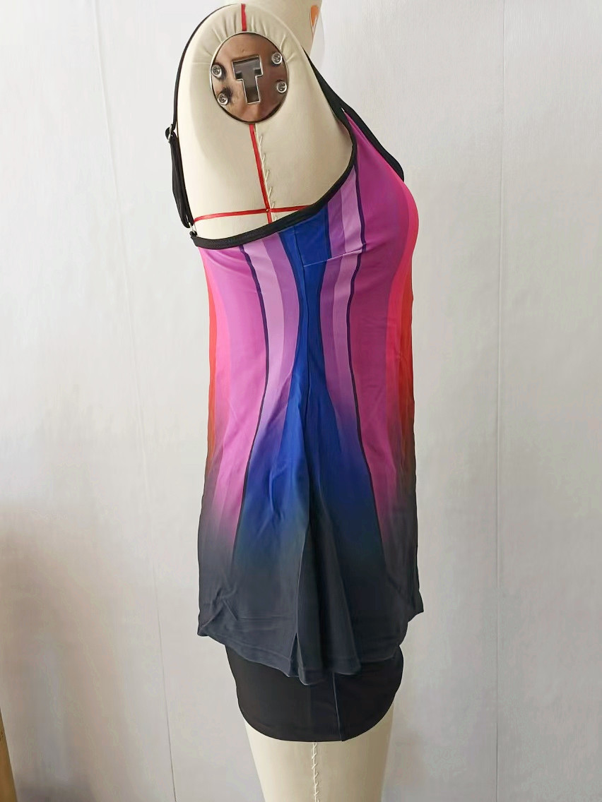 플러스 사이즈 수영복 보수 복서 인쇄 된 백리스 멀티 컬러 백리스 그라디언트 대조 분할 수영복