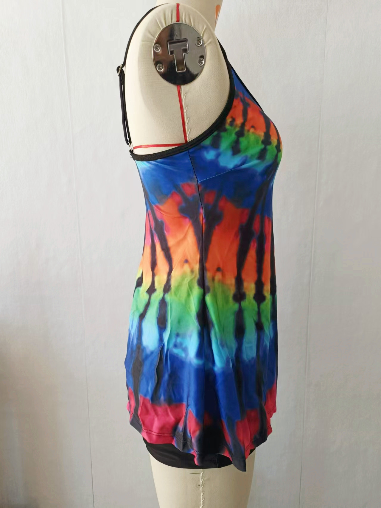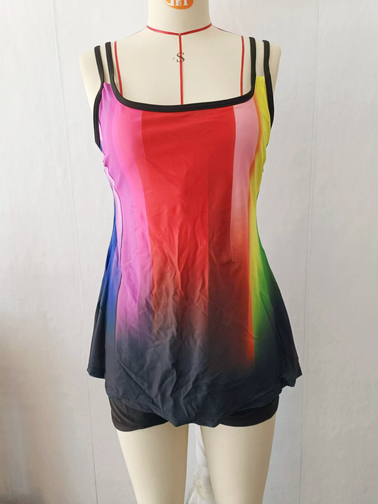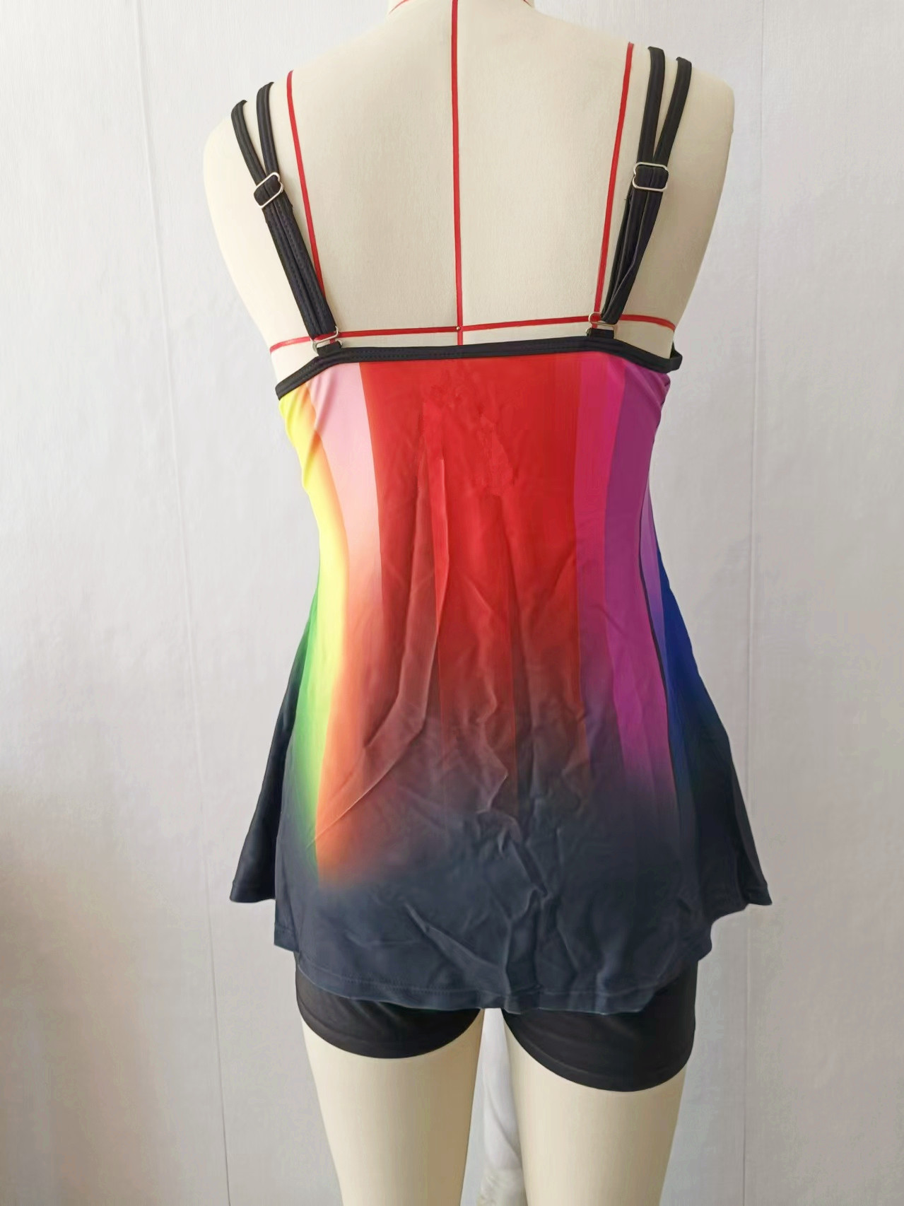 플러스 사이즈 수영복 보수 복서 인쇄 된 백리스 멀티 컬러 백리스 그라디언트 대조 분할 수영복