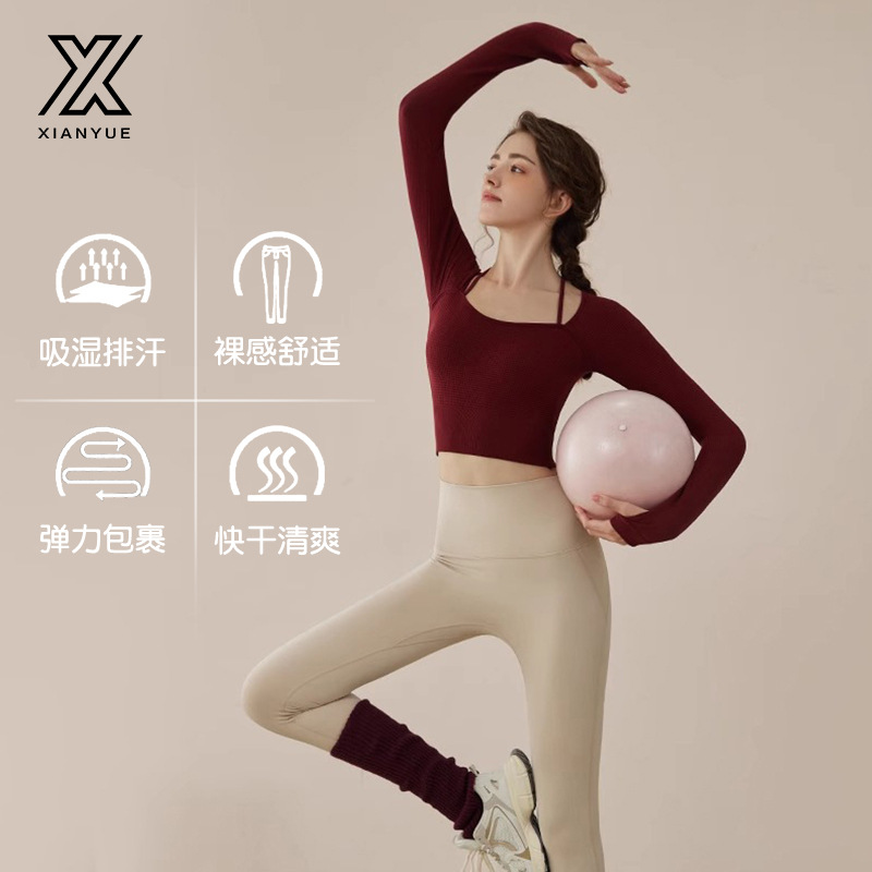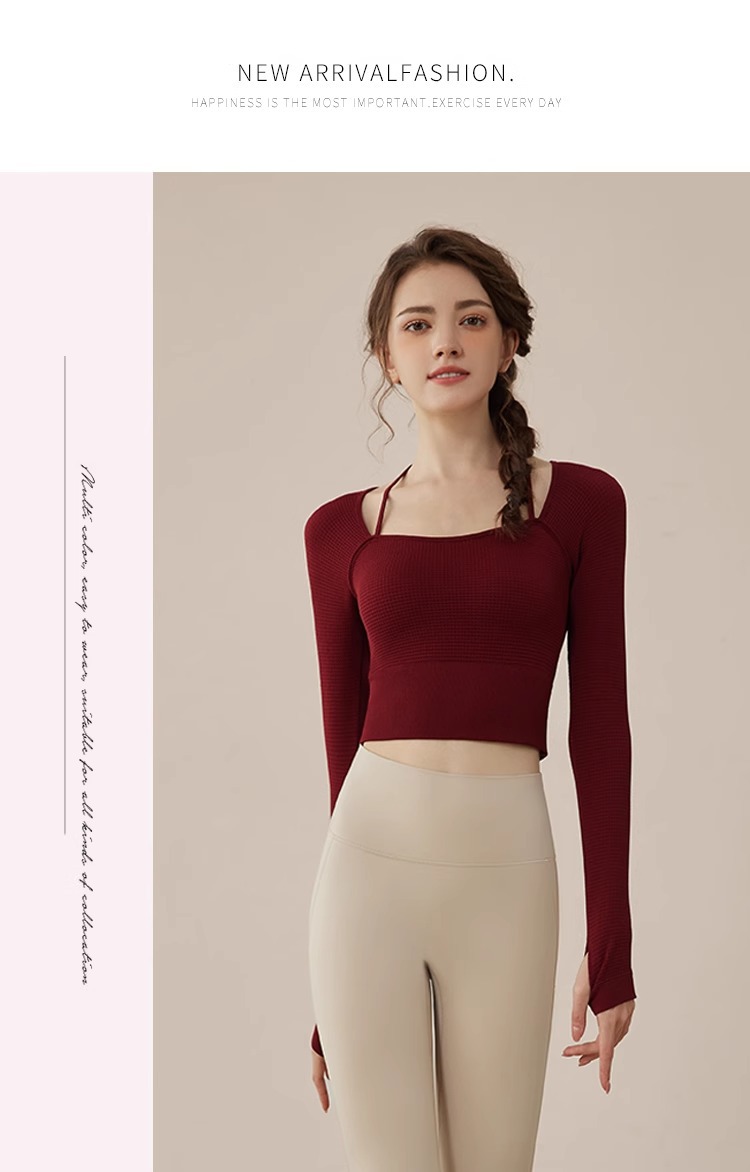 요가 의류 여성 2025 새로운 스포츠 통기성 빠른 건조 전문 필라테스 훈련 의류 피트니스 긴 소매 탑 도매스토어 가기
