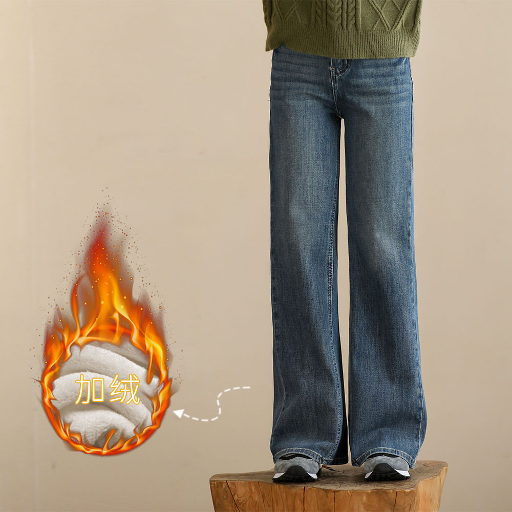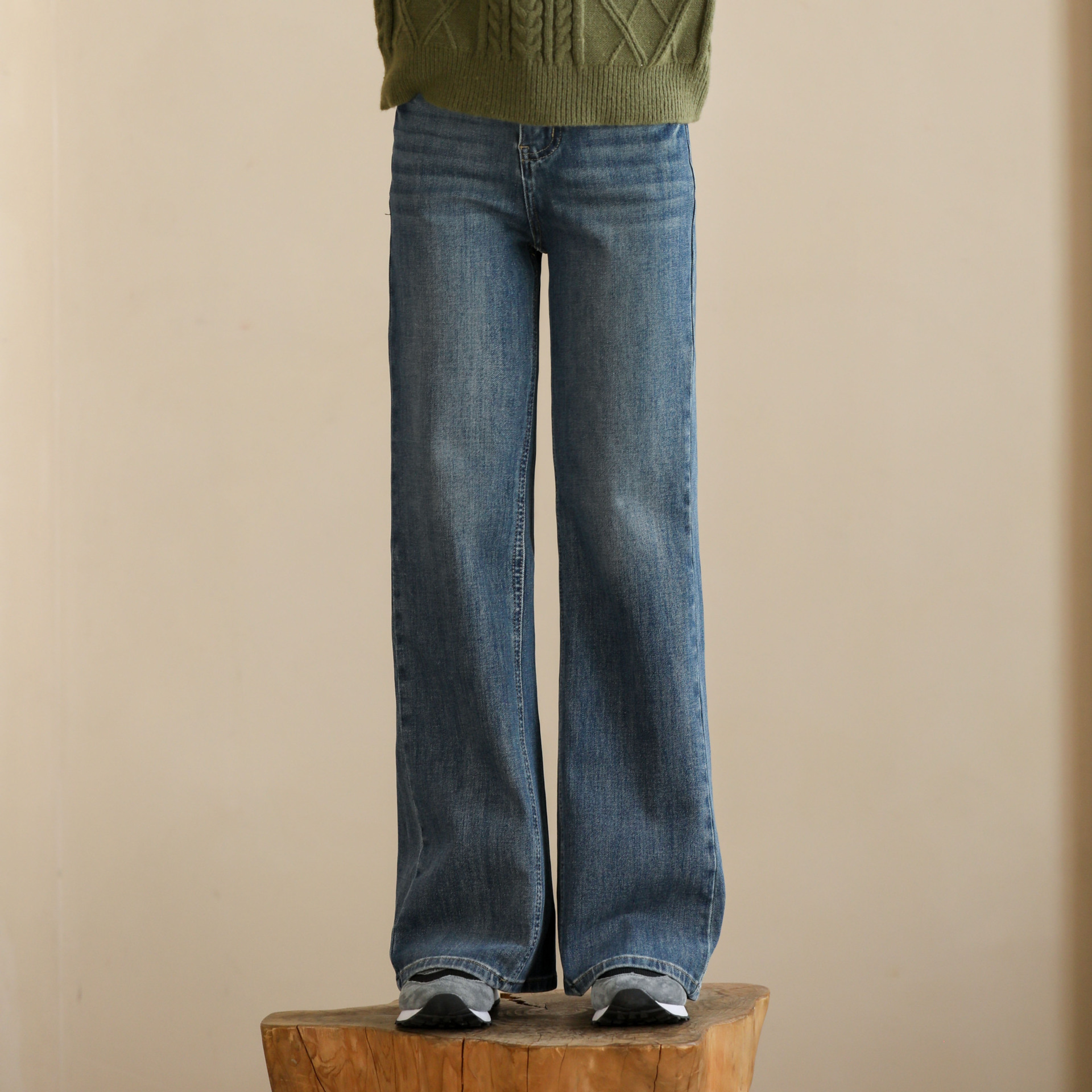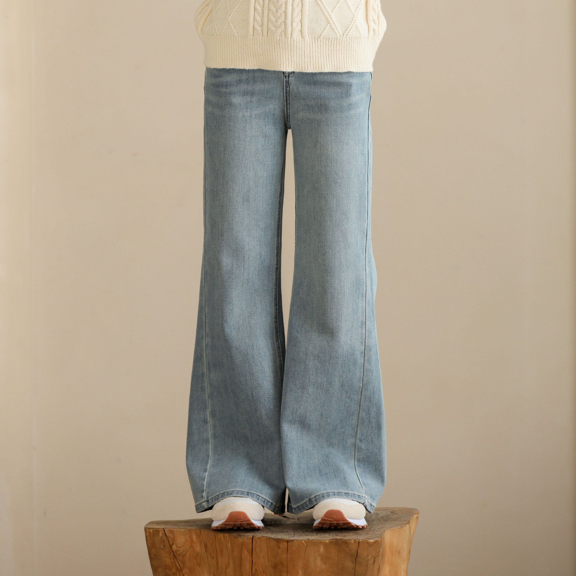 인기 있는 가을 겨울 4방향 스트레치 복고풍 중대형 여아 청바지, 루즈하고 다리에 꼭 맞지 않는 와이드 레그 마이크로 플레어 팬츠 크로스보더 인스토어 가기