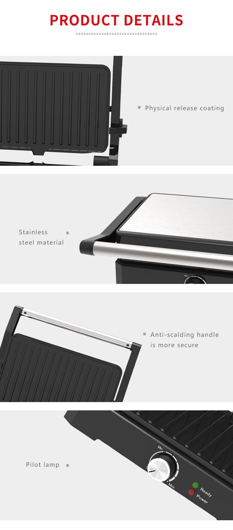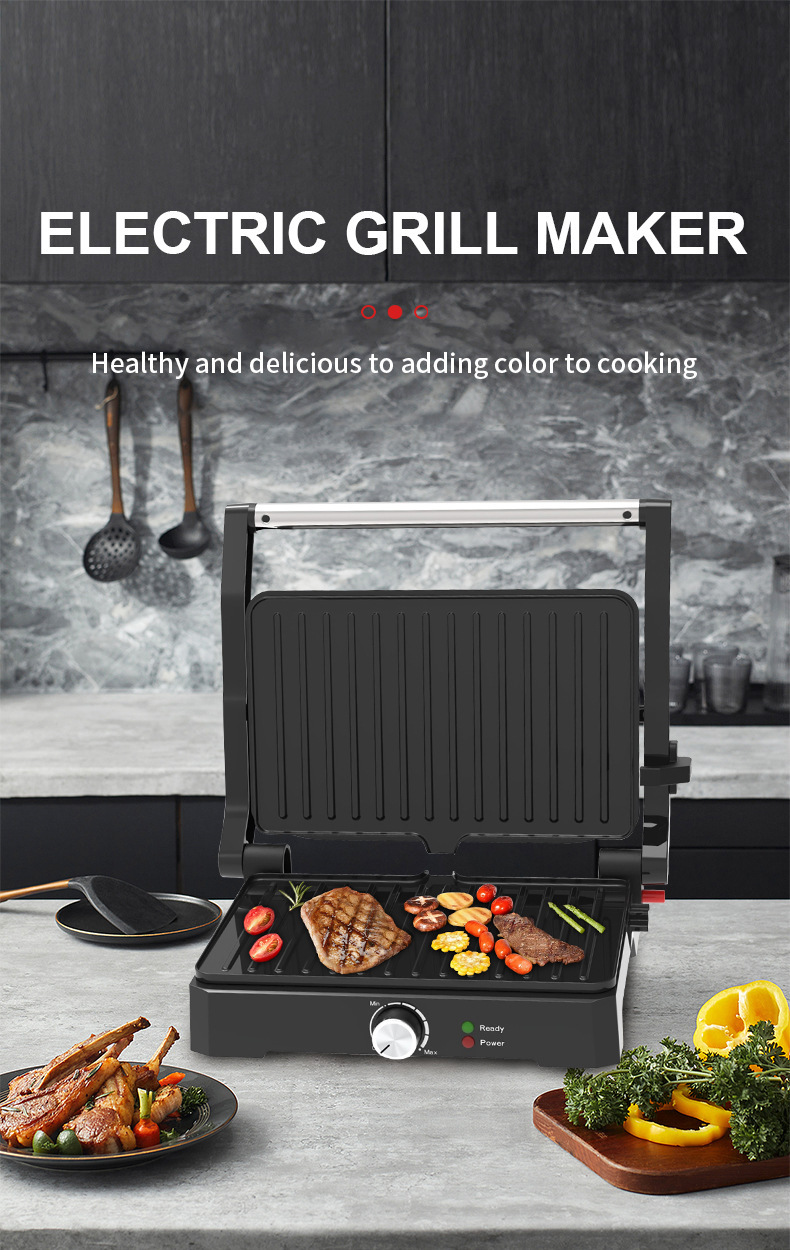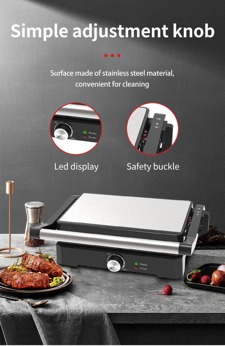 대외 무역 핫 파니니 기계 샌드위치 기계 가구 180 도 누워 플랫 스테이크 기계 바베큐 기계 햄버거 빵 기계