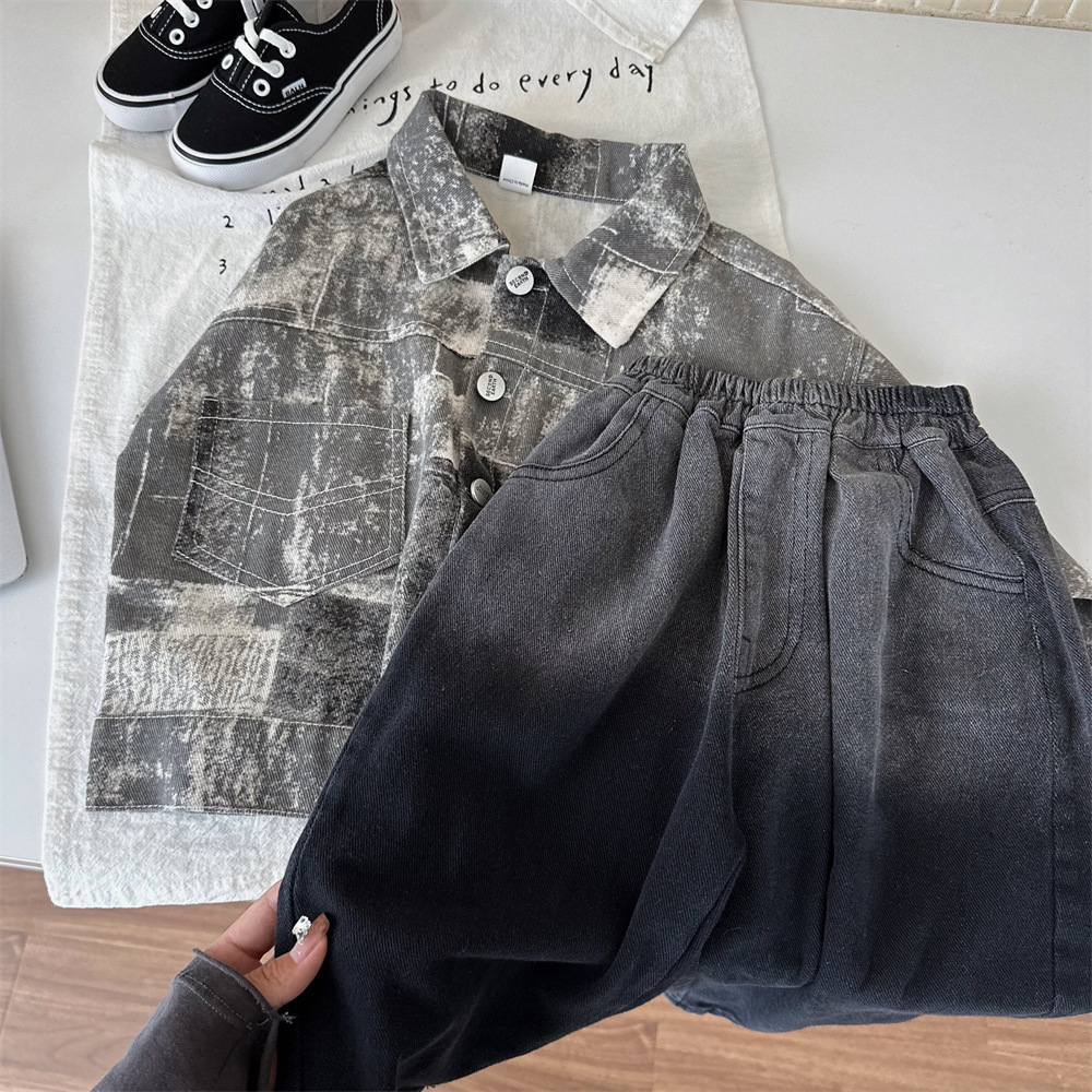 어린이 청바지 2024 가을 새 소년 바지 아기 서양식 캐주얼 바지 어린이 착용 한국식 와이드 다리 바지스토어 가기