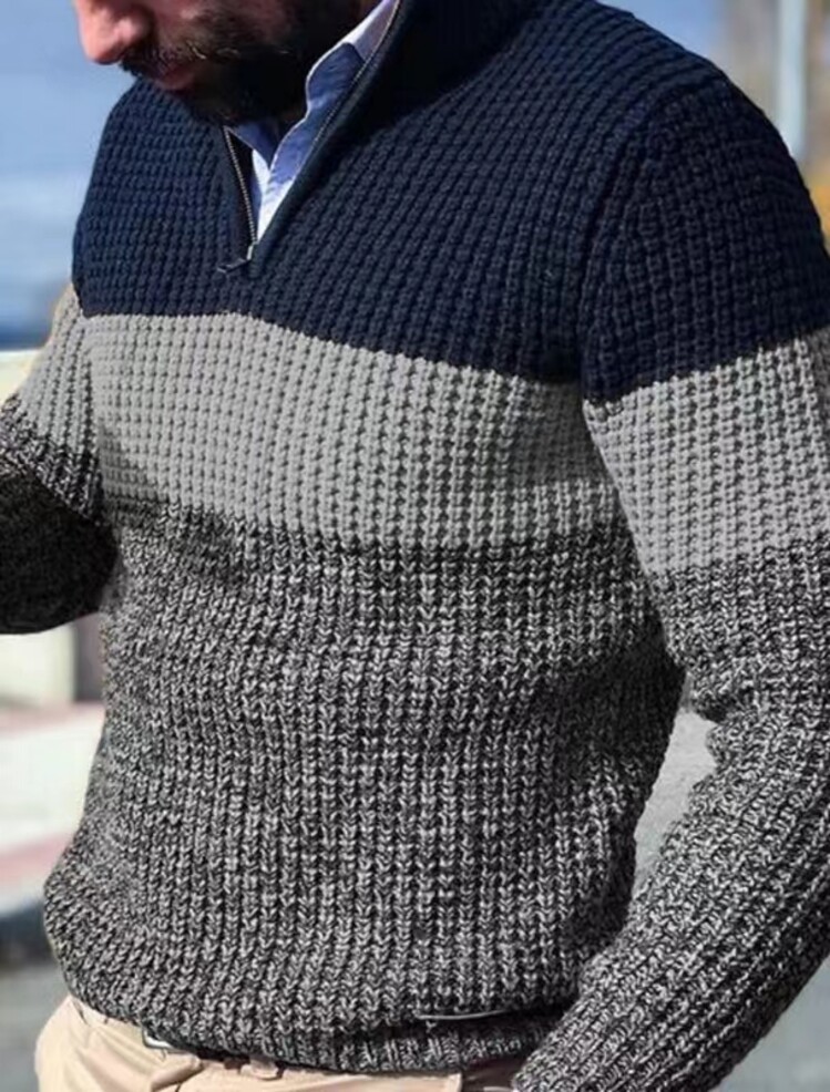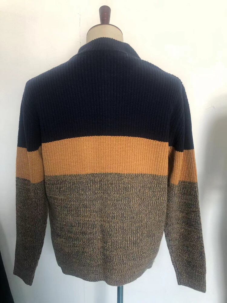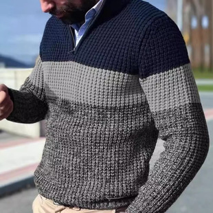 유럽과 미국 남성의 대외 무역 니트 스웨터 긴팔 니트 스웨터 가을과 겨울 반 높이 지퍼 스트라이프베이스 니트 스웨터