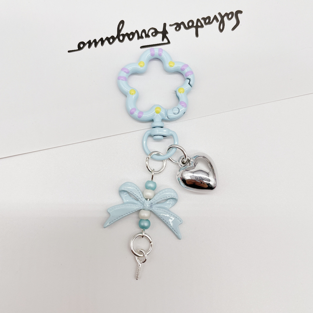 • 라이트 블루(플라워 스프링 버클 + 리본 조합 열쇠고리)