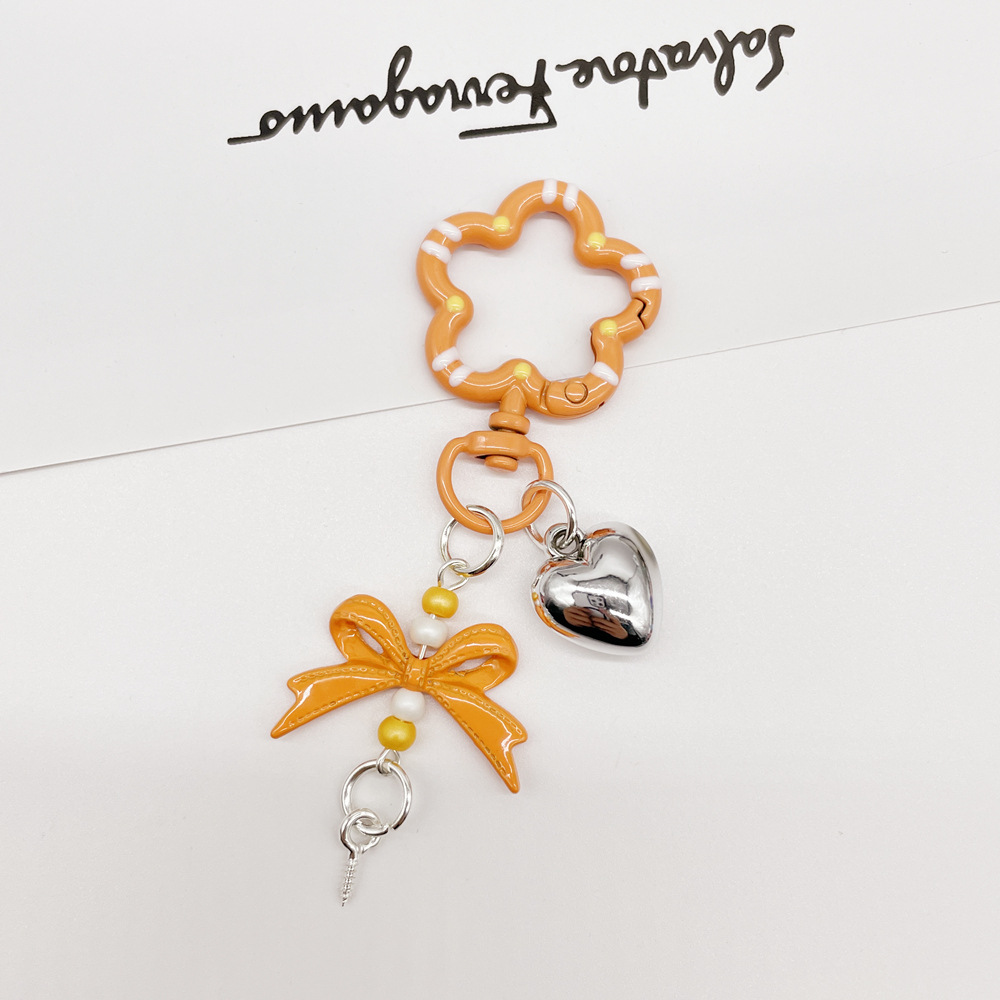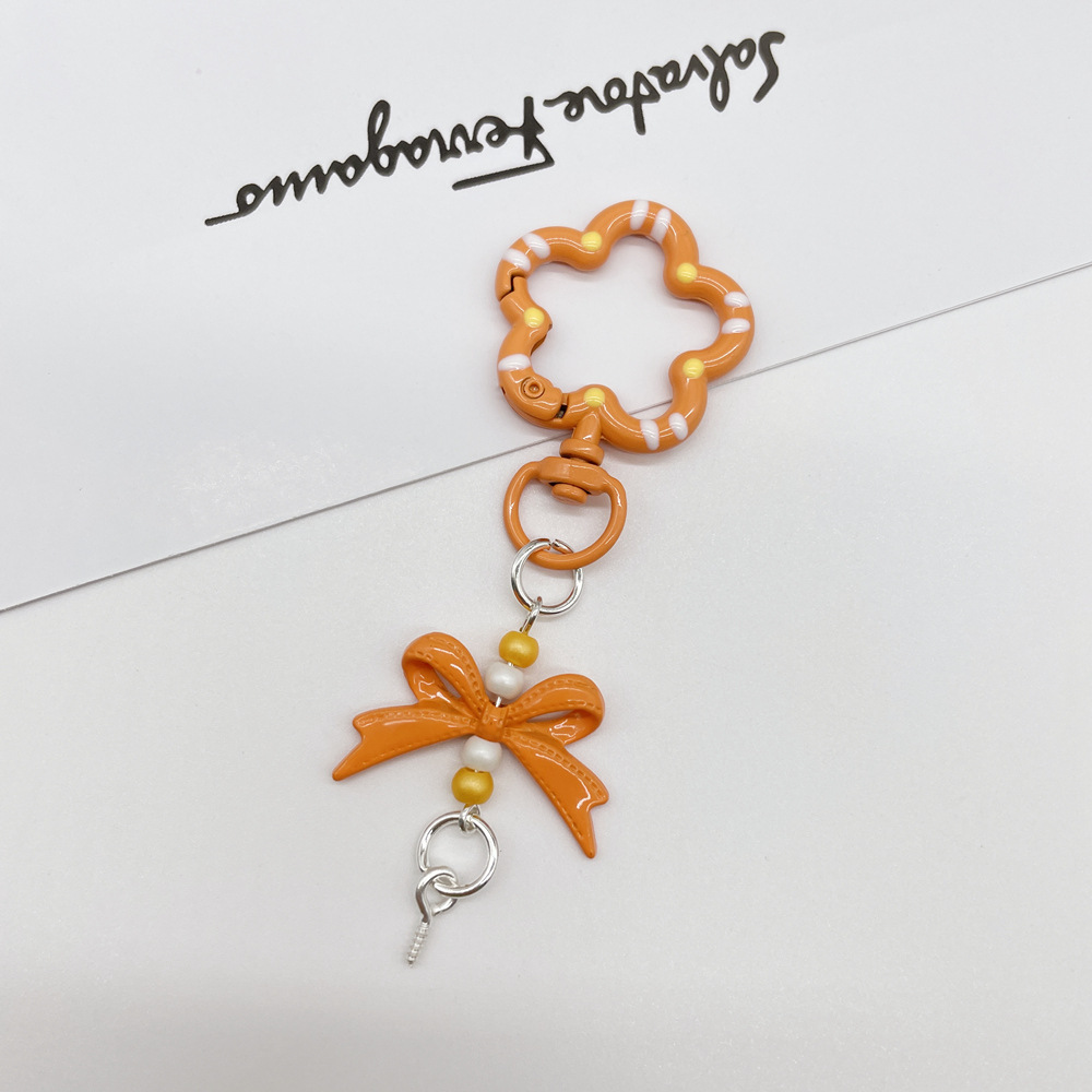• 오렌지 (플라워 스프링 버클 + 리본 조합 열쇠고리)