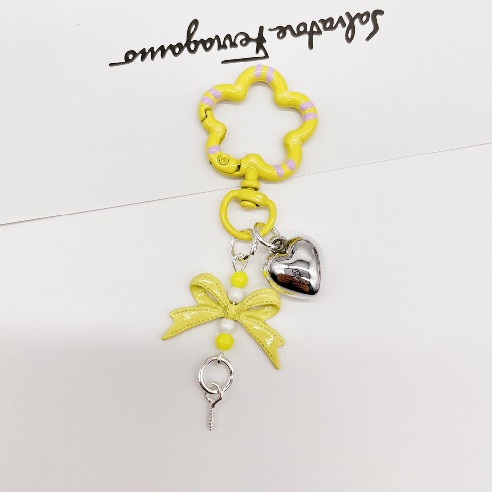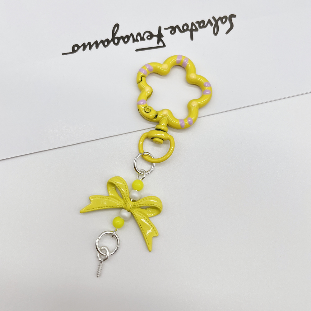 • 옐로우 (플라워 스프링 버클 + 리본 조합 열쇠고리)