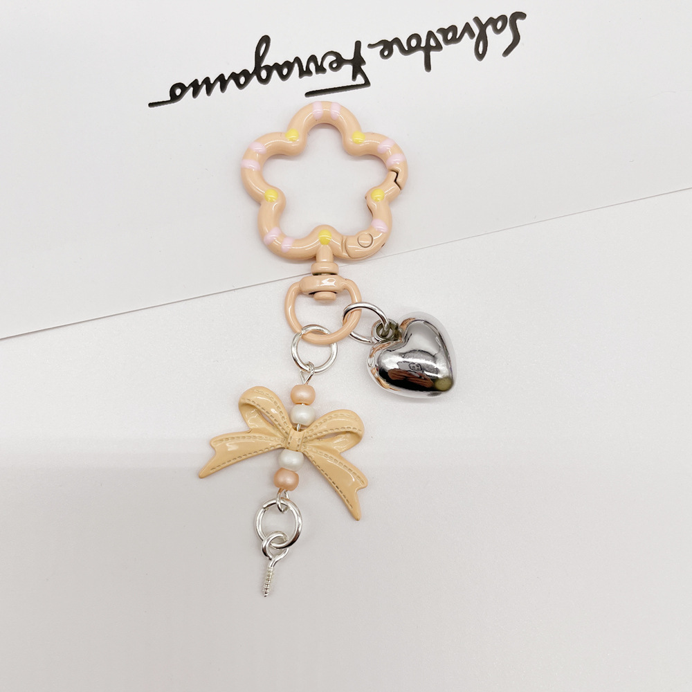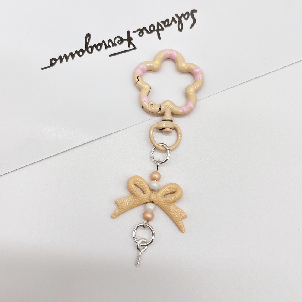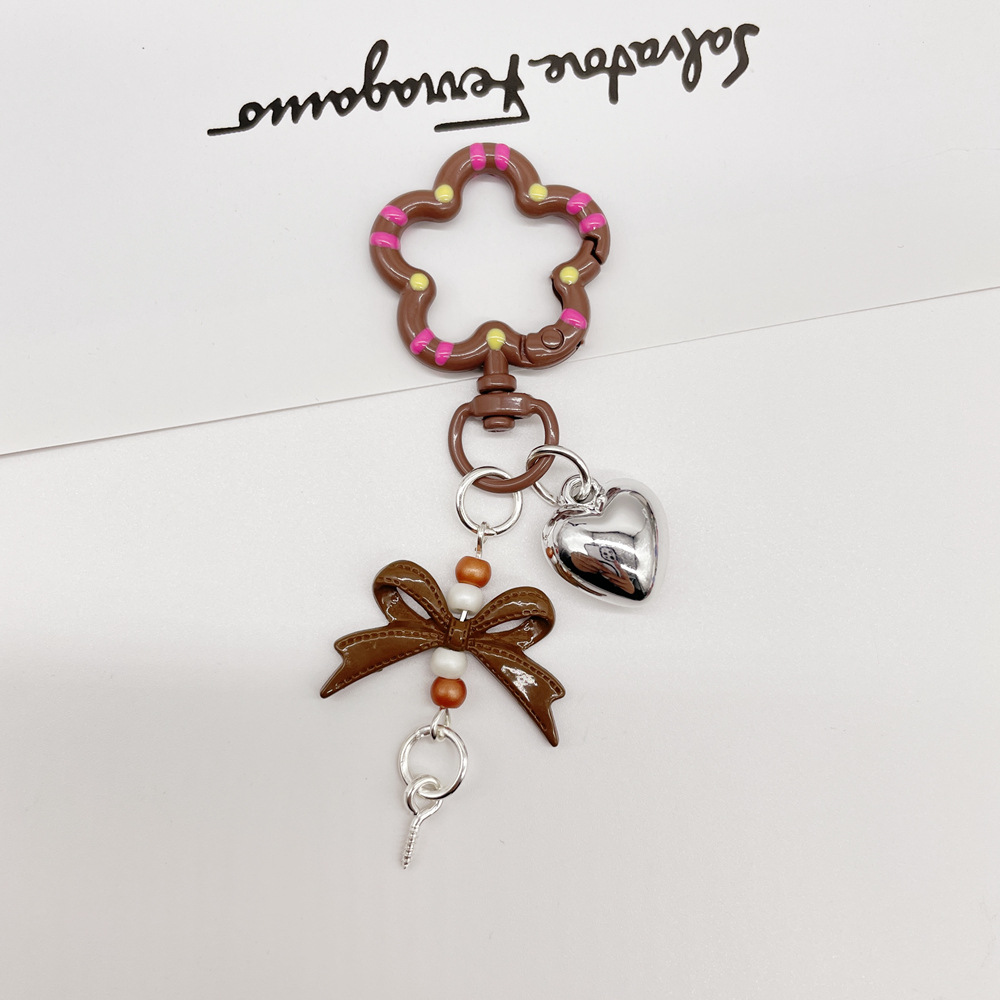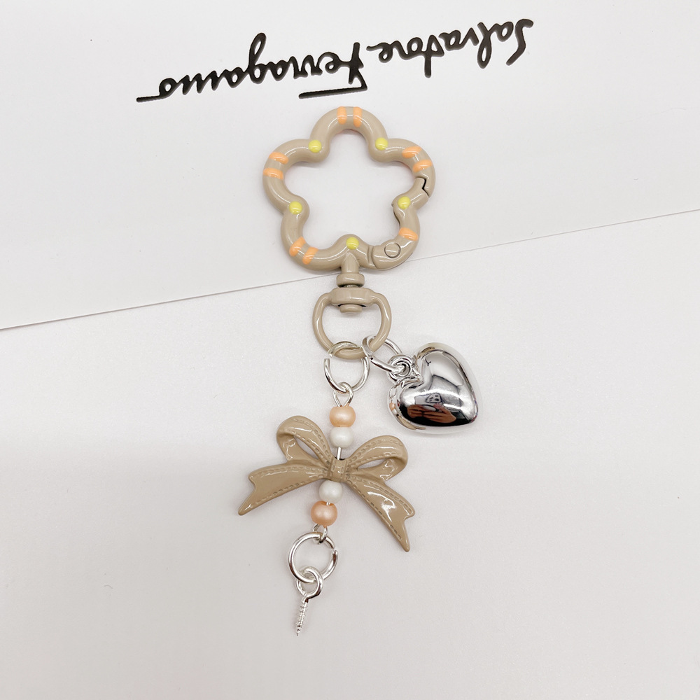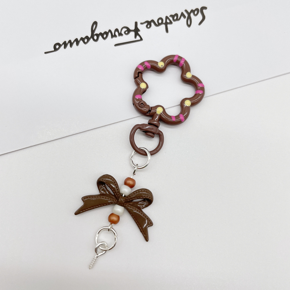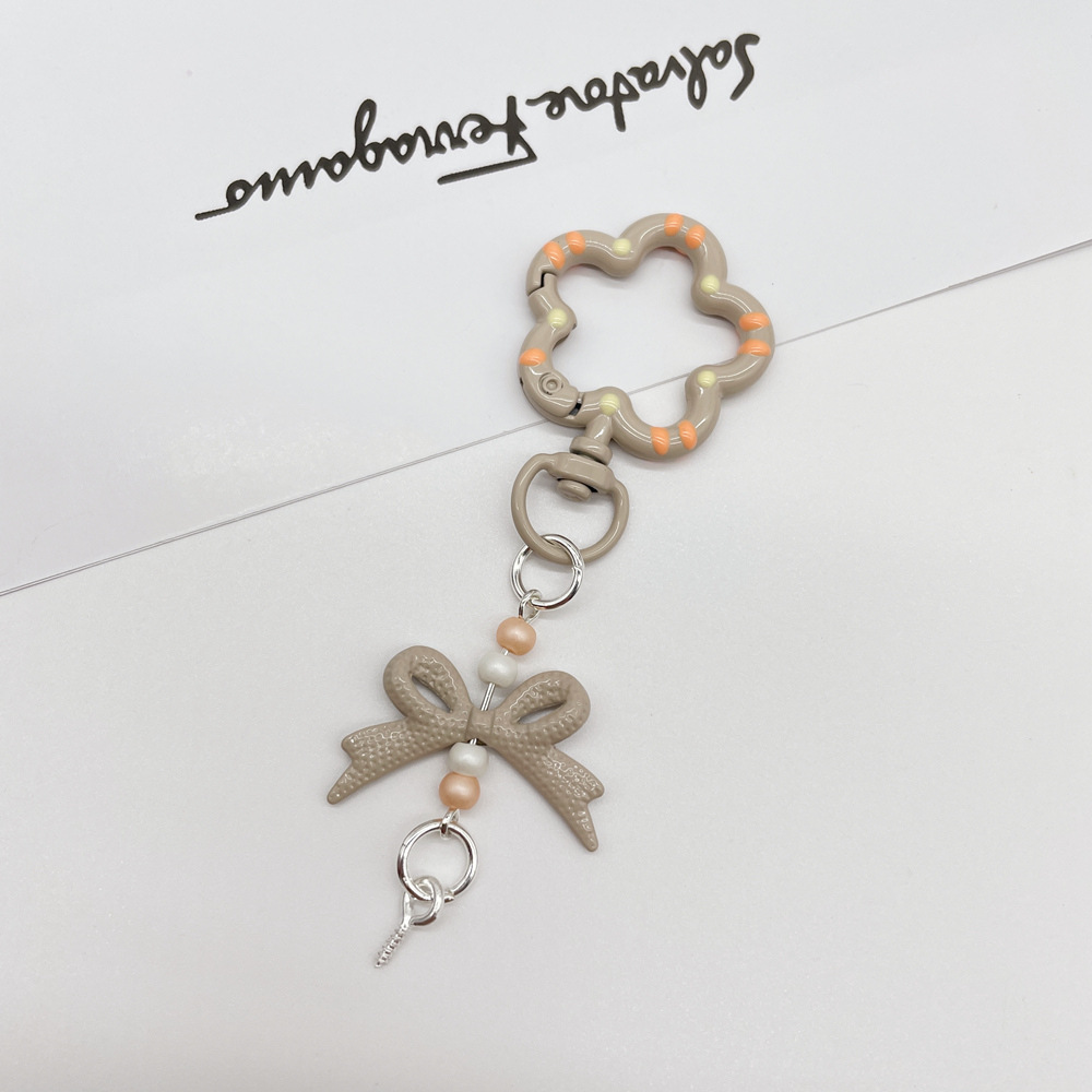 • 라이트 커피/라이트 브라운 (플라워 스프링 버클 + 리본 조합 열쇠고리)