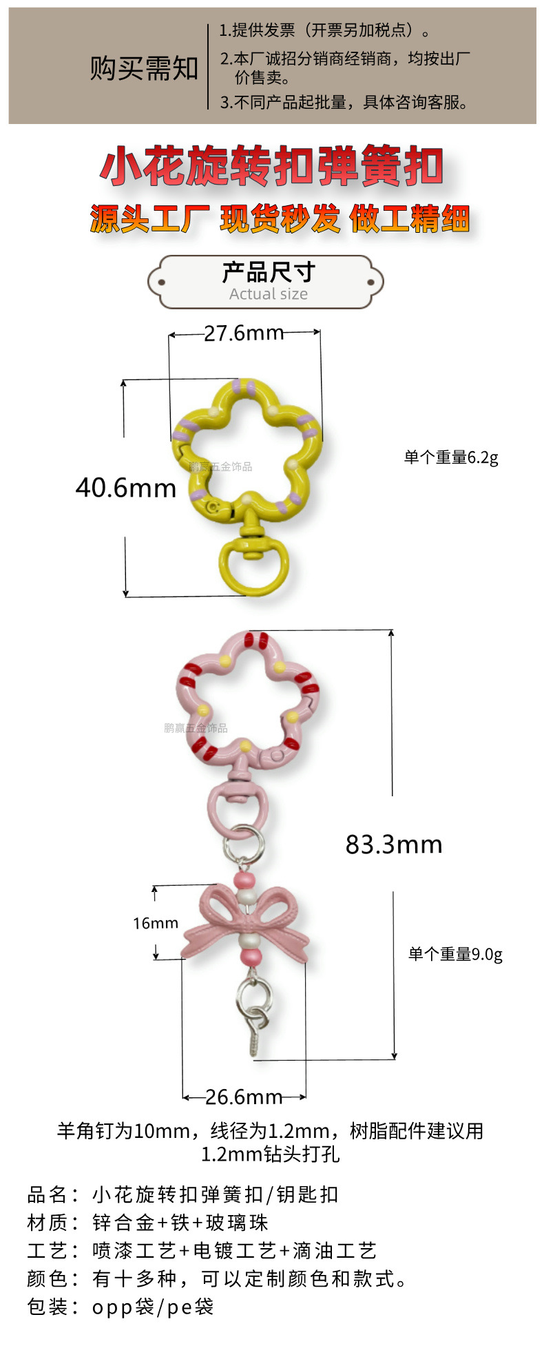 • 혼합 색상(꽃 회전 스프링 버클 + 리본 키체인)
