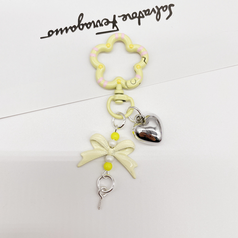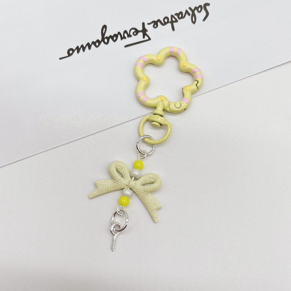 • 라이트 옐로우(플라워 스프링 버클 + 리본 조합 열쇠고리)