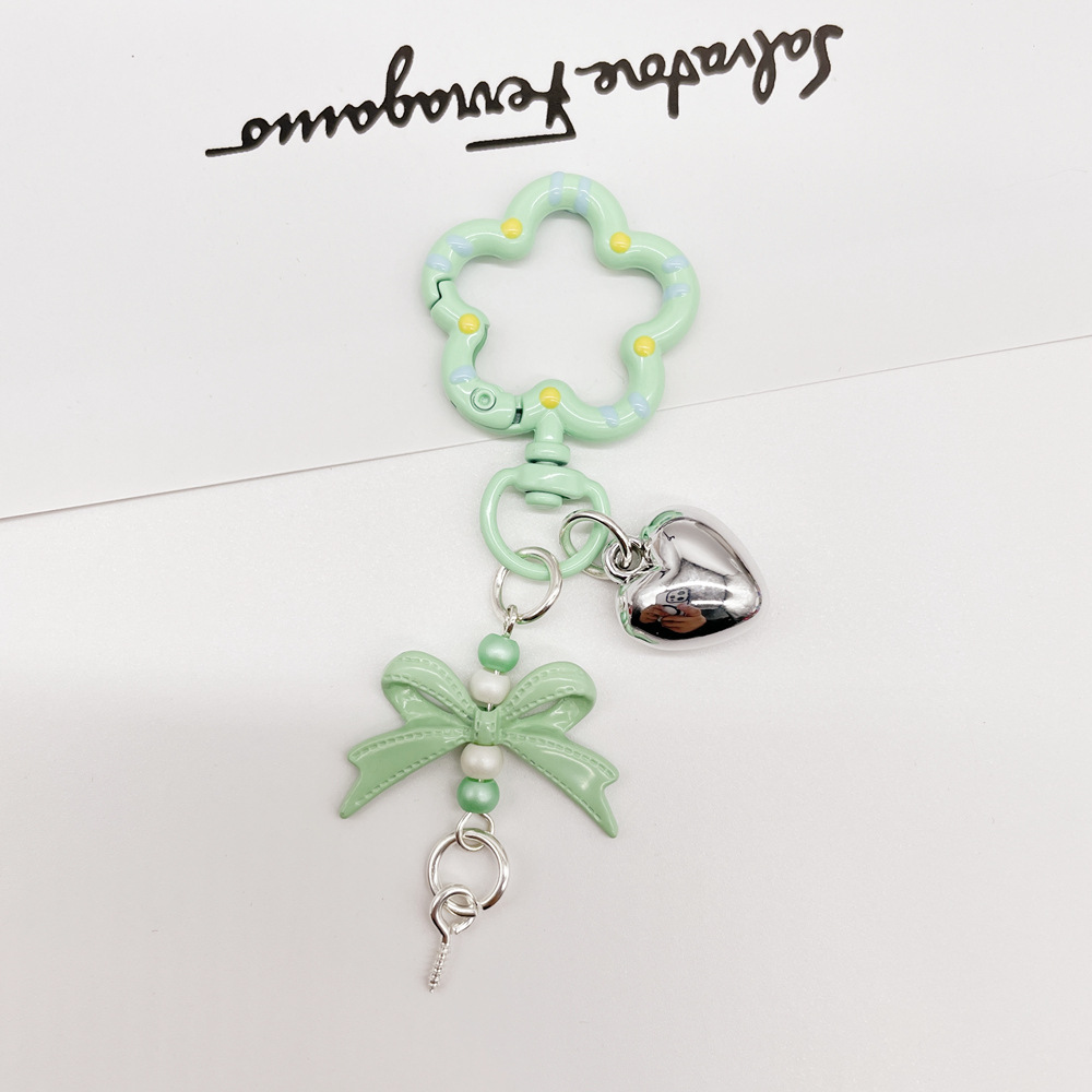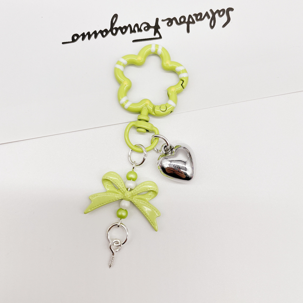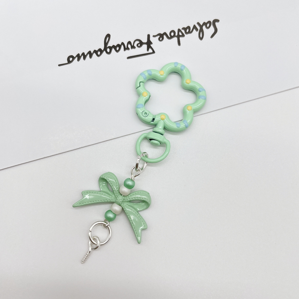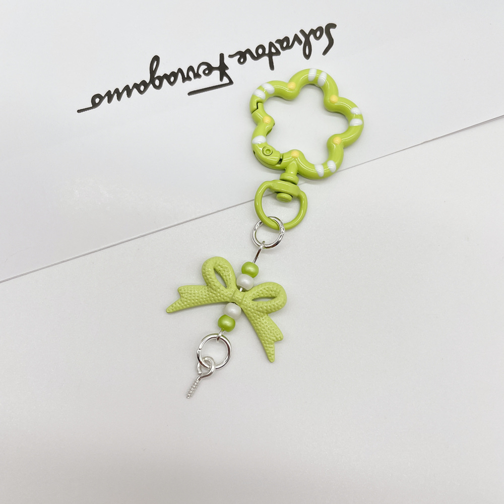 • 라임 그린(꽃 스프링 버클 + 리본 조합 키체인)