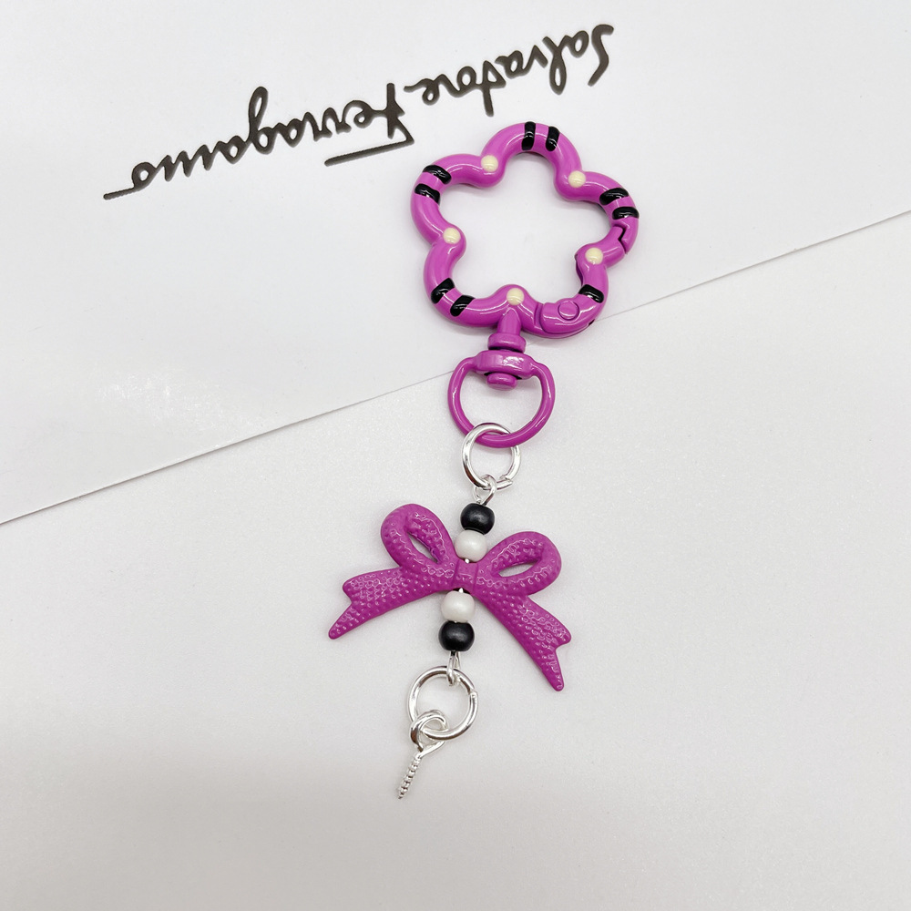 • 라이트 퍼플 (플라워 스프링 버클 + 리본 조합 열쇠고리)