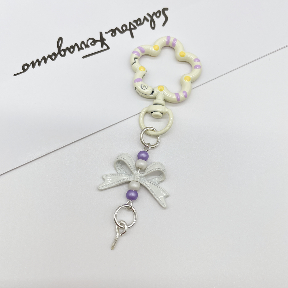 • 오프화이트 (플라워 스프링 버클 + 리본 조합 열쇠고리)