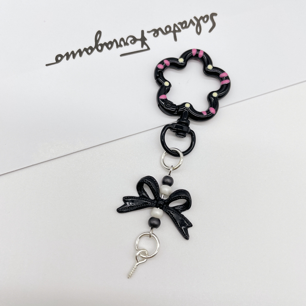 • 블랙(플라워 스프링 버클 + 리본 조합 열쇠고리)