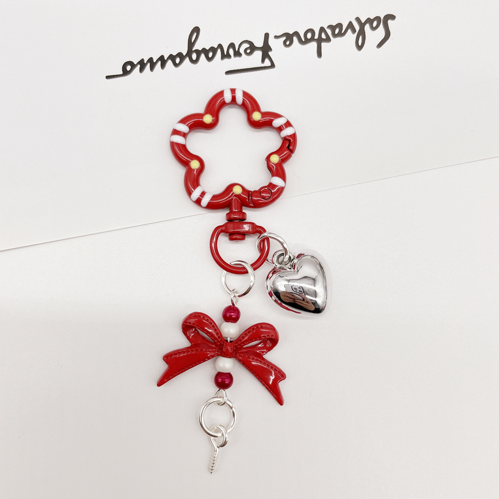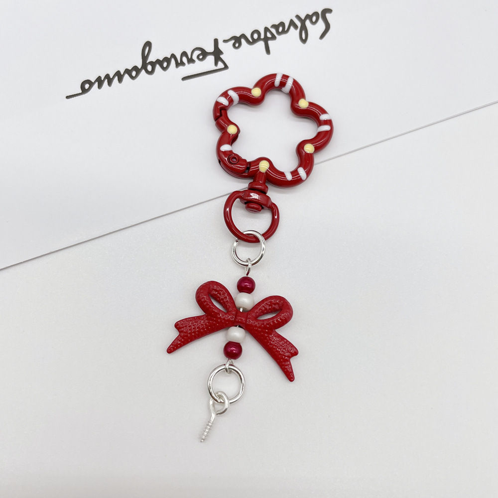 • 레드 (플라워 스프링 버클 + 리본 조합 열쇠고리)