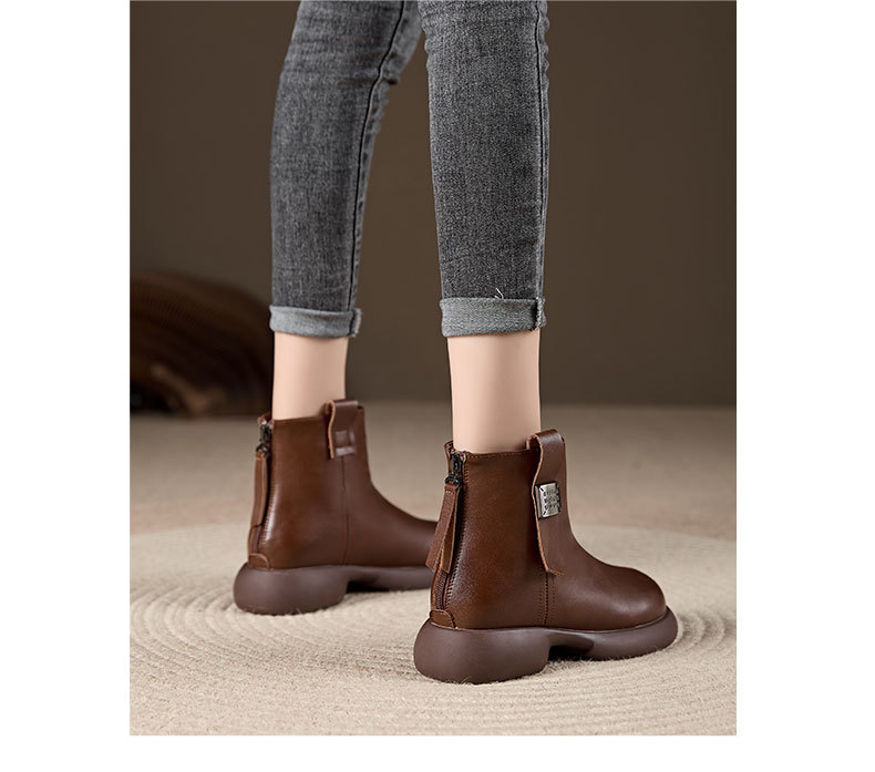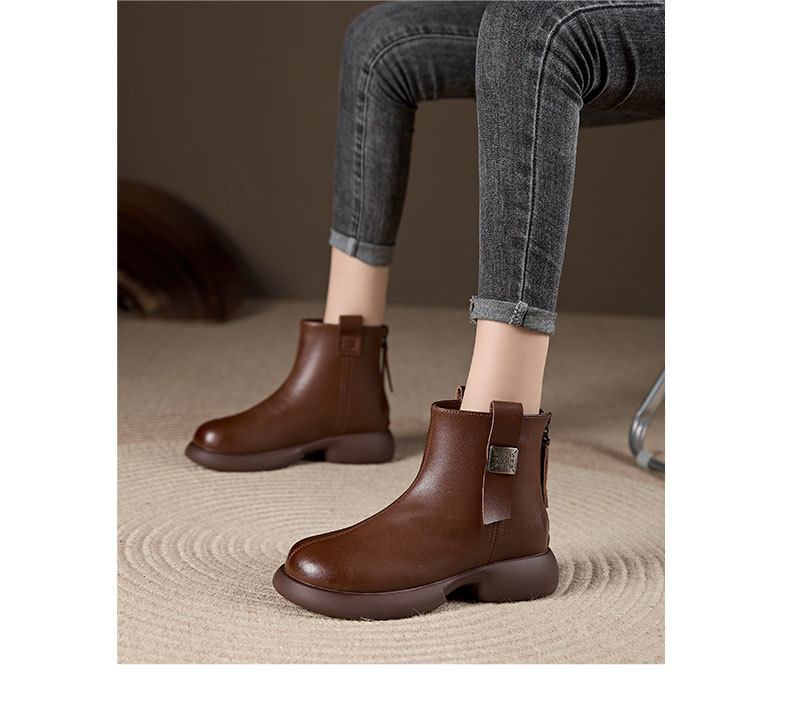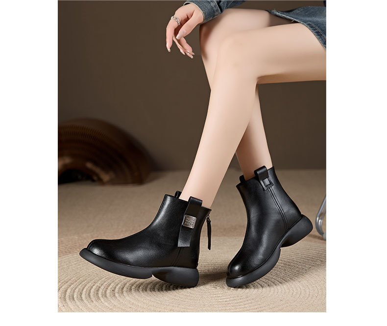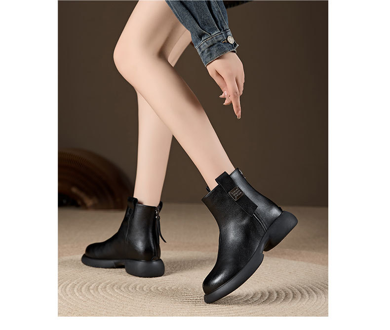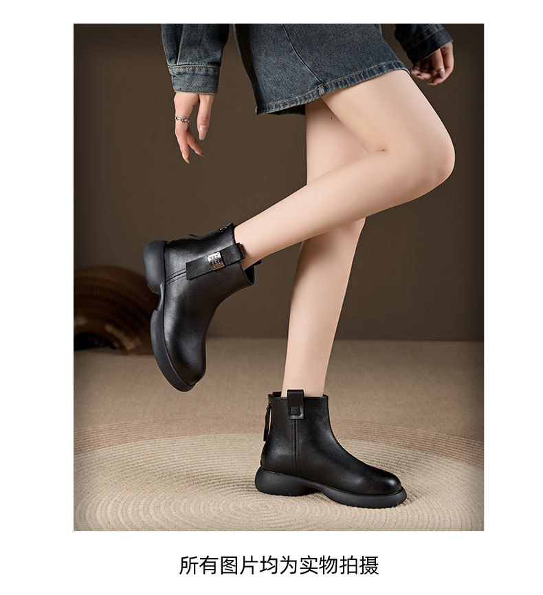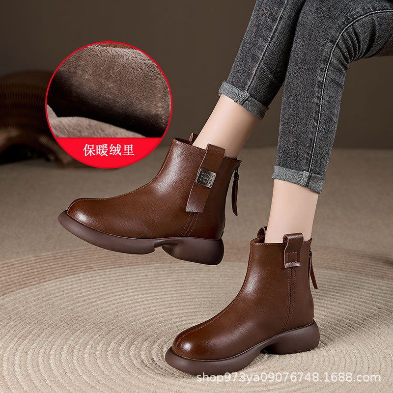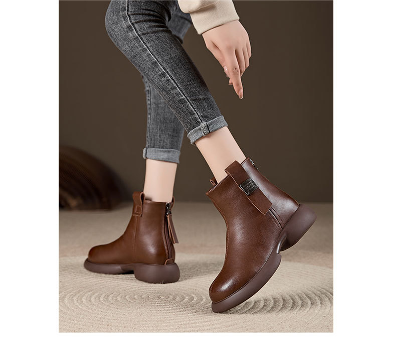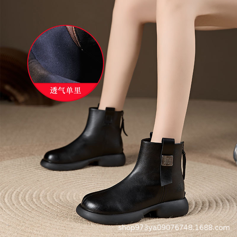 마틴 부츠 여성 가죽 부츠 2024 가을 및 겨울 새로운 정품 가죽 레트로 플랫 라운드 헤드 패션 올 매치 쇼트 부츠 여성 669스토어 가기