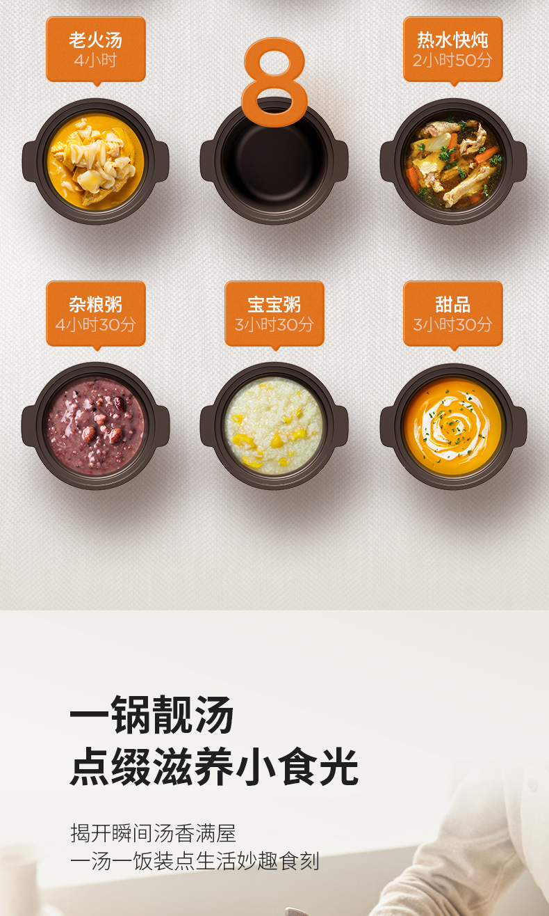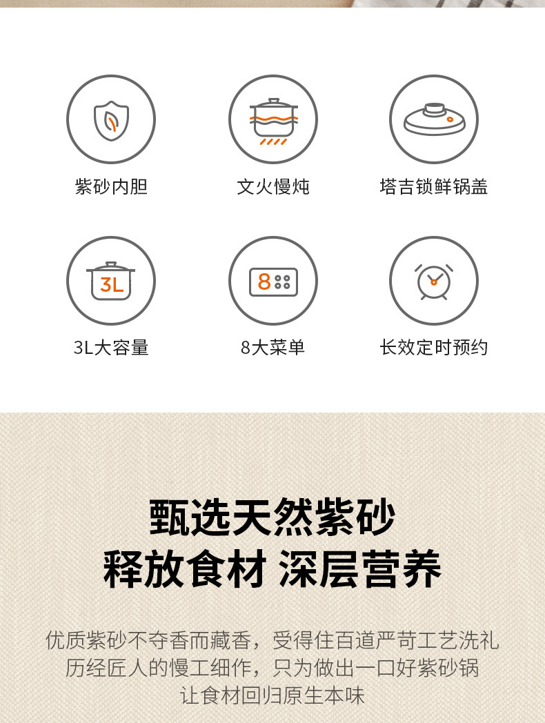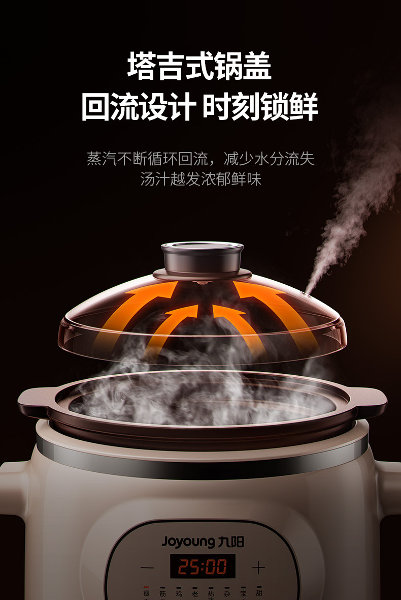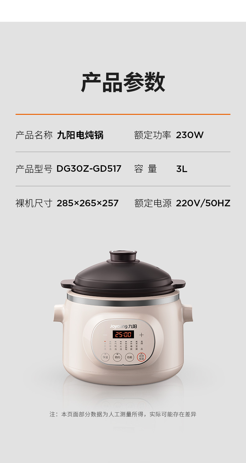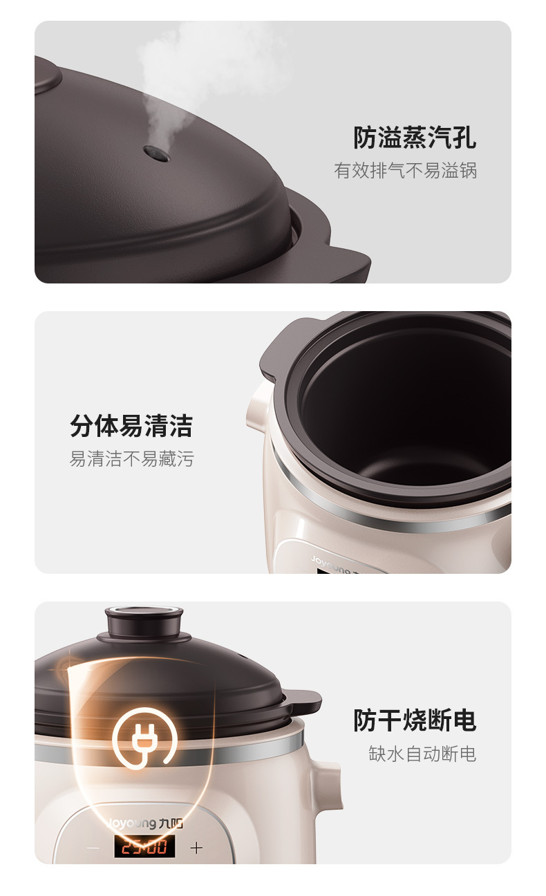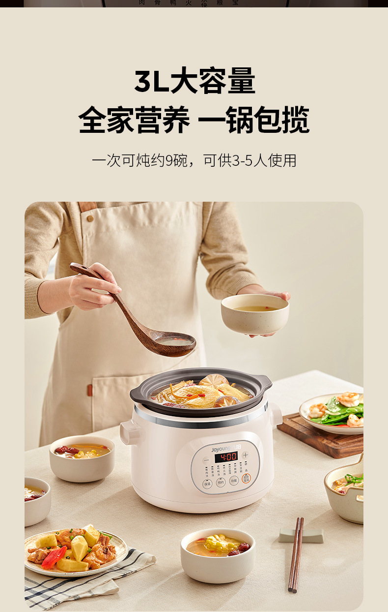 Jiuyang 전기 스튜 냄비 수프 냄비 세라믹 가정용 보라색 캐서롤 죽 3L DG30Z-GD517