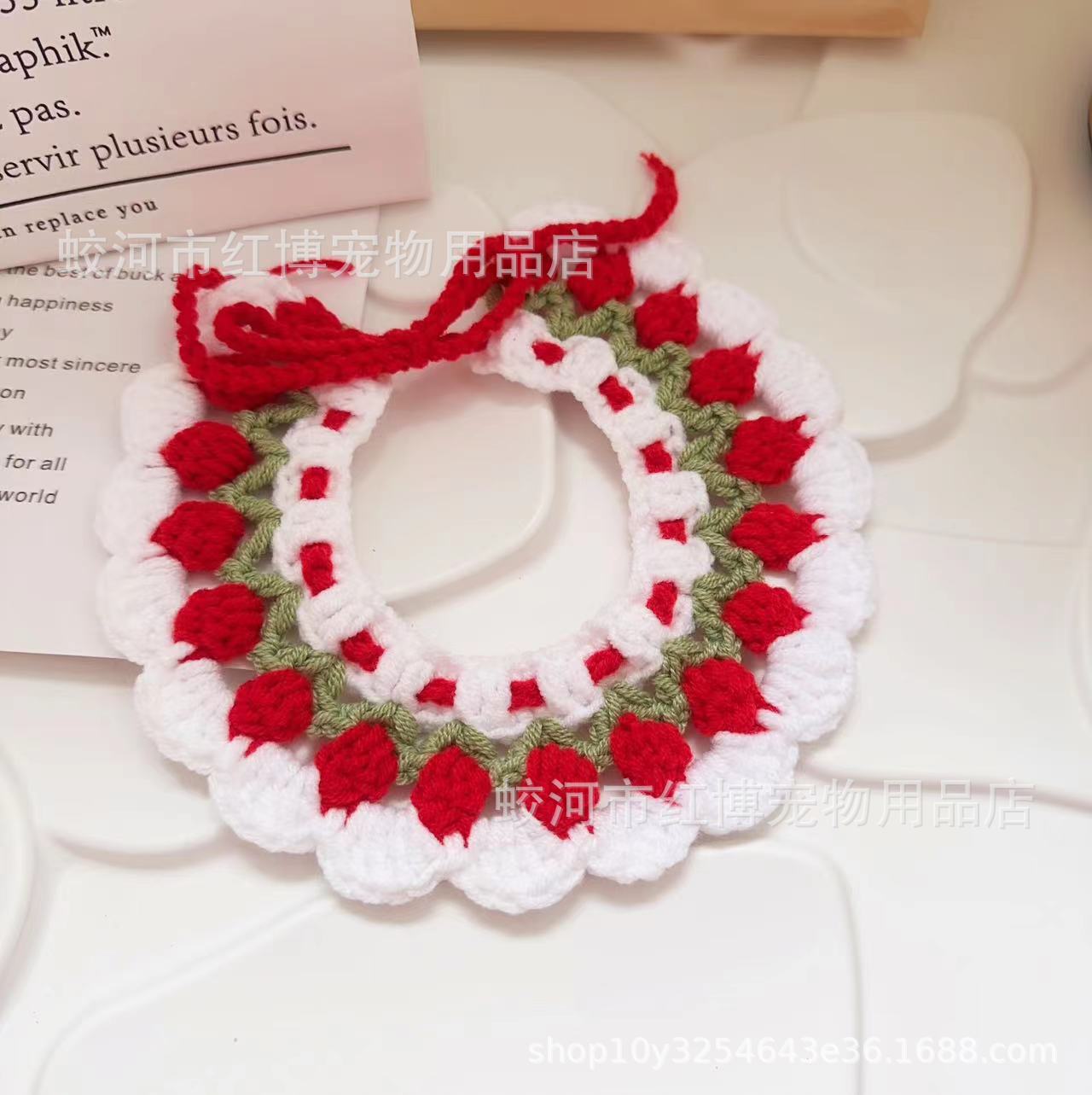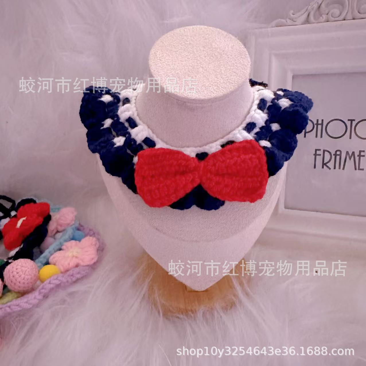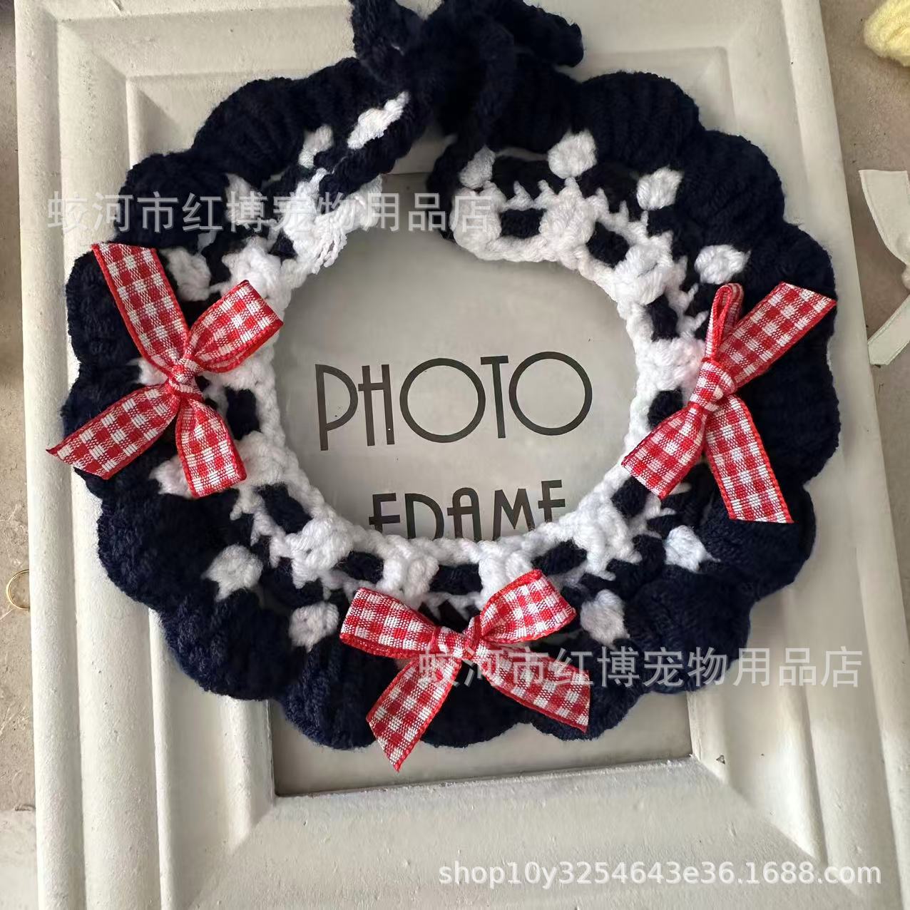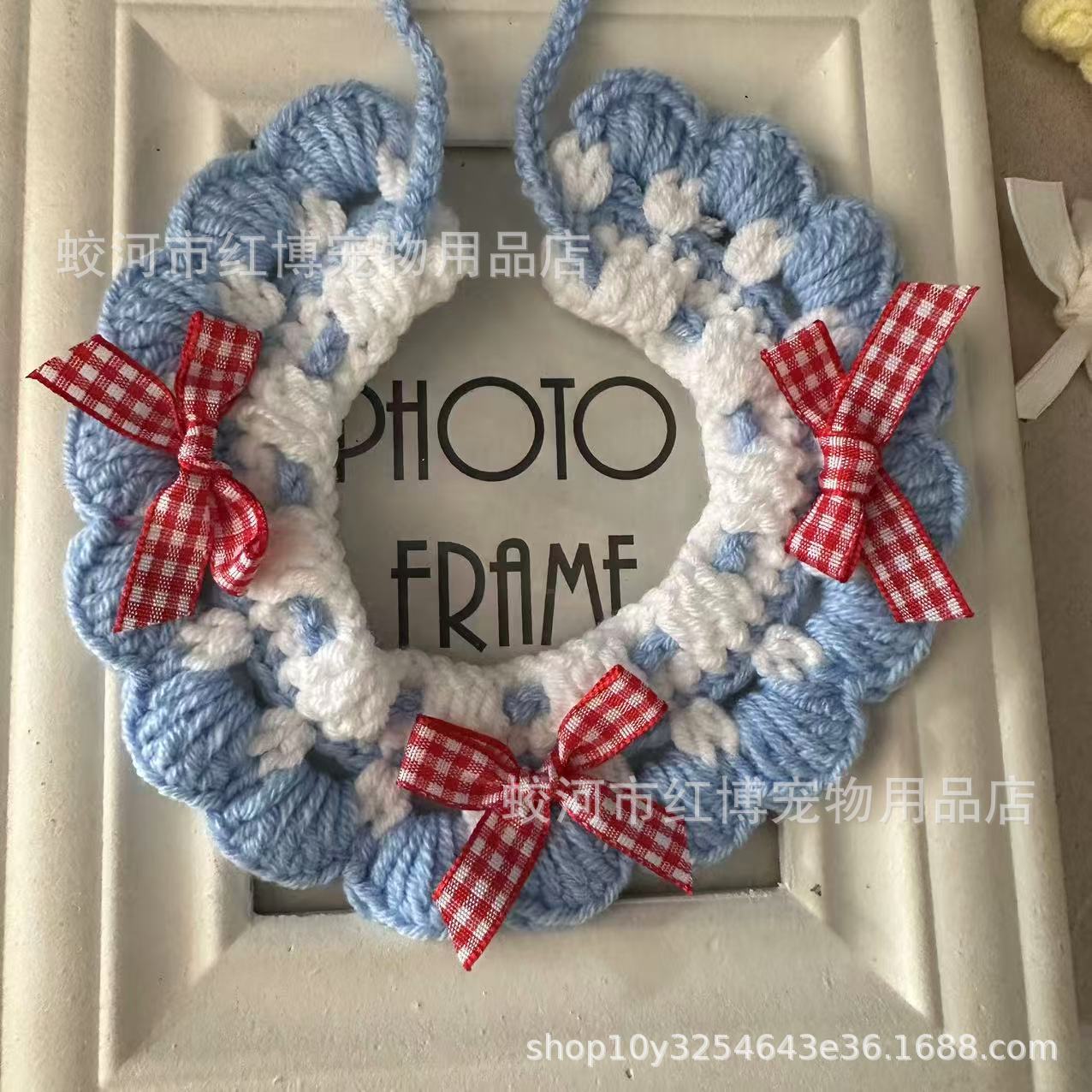 손으로 짠 애완 동물 칼라 턱받이 고양이 턱받이 액세서리 개 울 타액 수건 고양이 턱받이 크리스마스 새해
