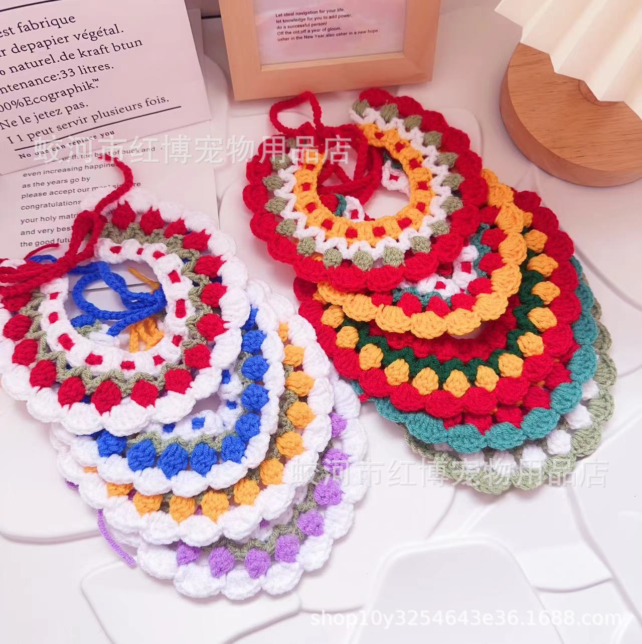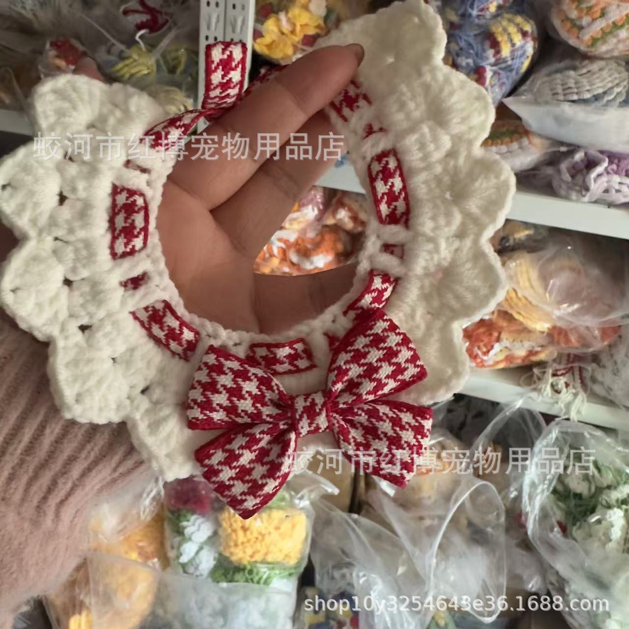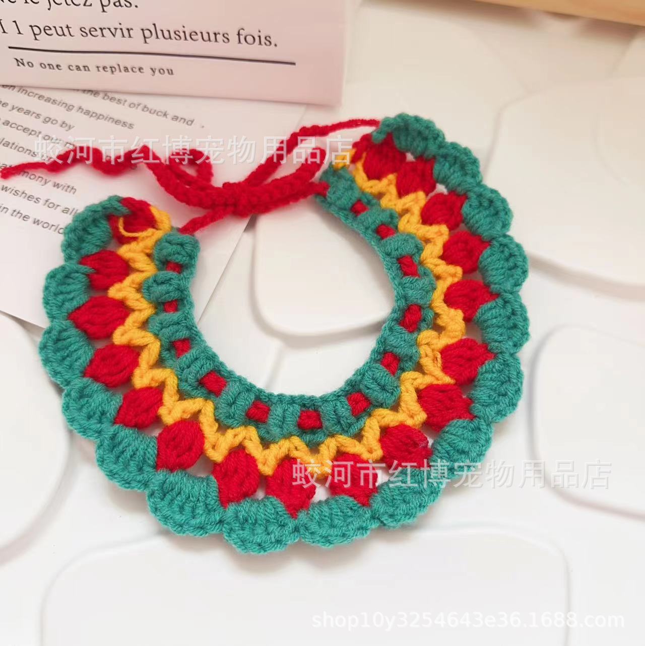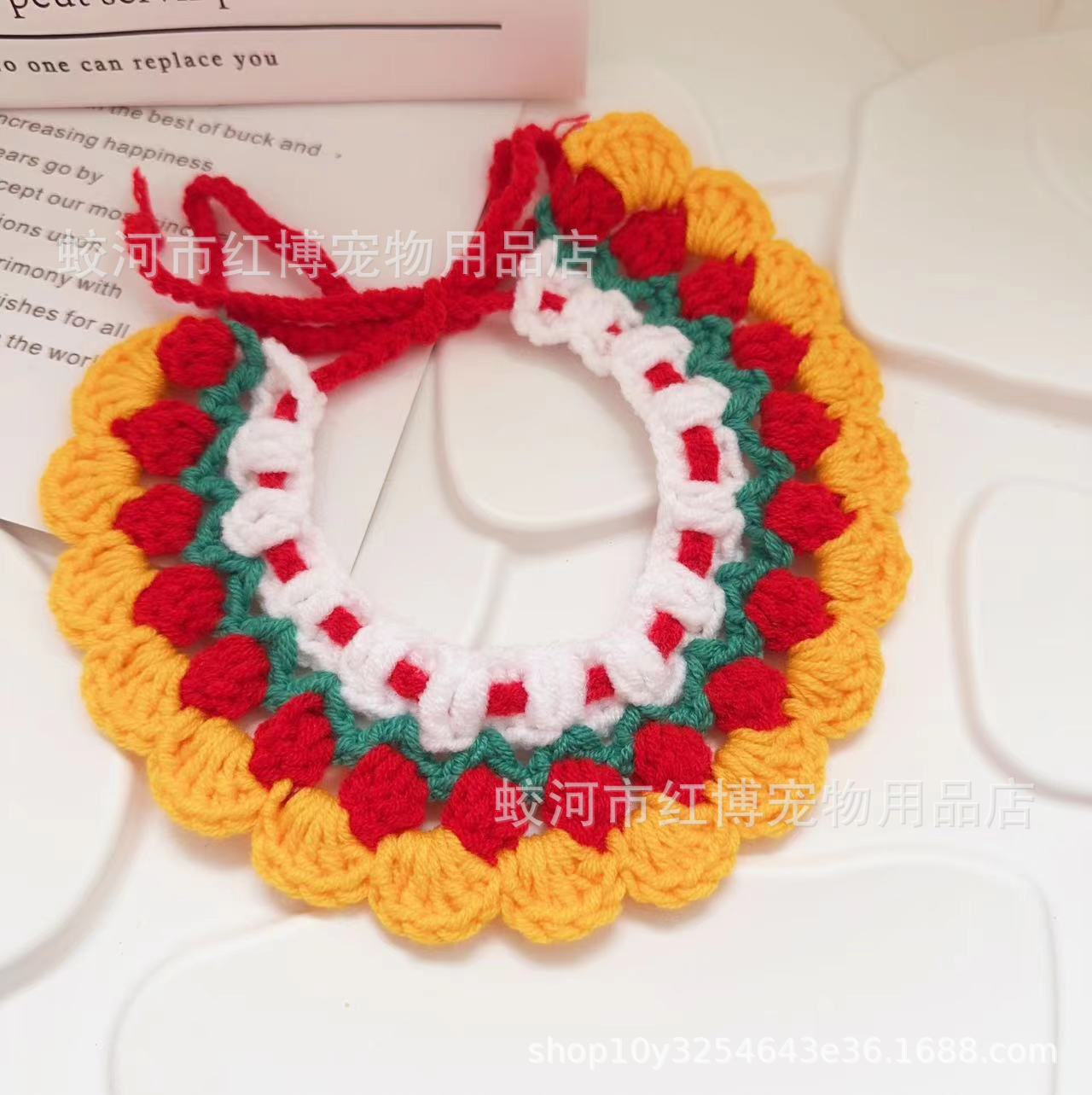 손으로 짠 애완 동물 칼라 턱받이 고양이 턱받이 액세서리 개 울 타액 수건 고양이 턱받이 크리스마스 새해스토어 가기