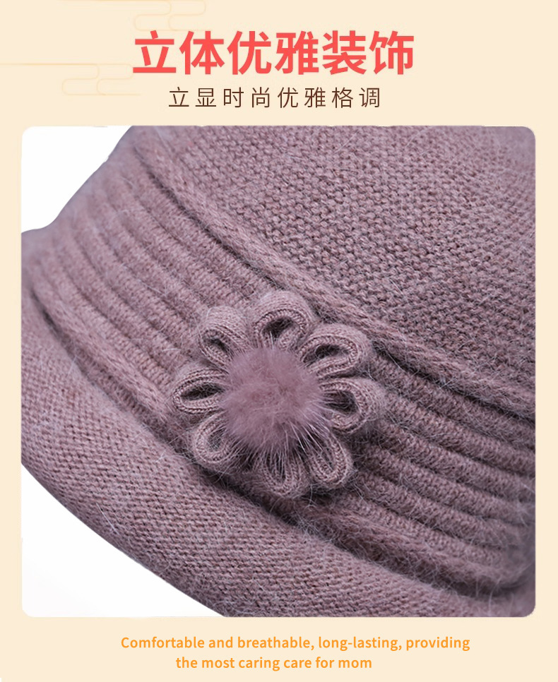 겨울 노인 모자, 할머니용 큰 챙, 두꺼운 보온 방한 모직 모자, 중년 및 노년 여성용 새해 모자