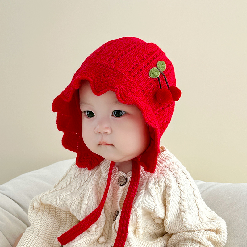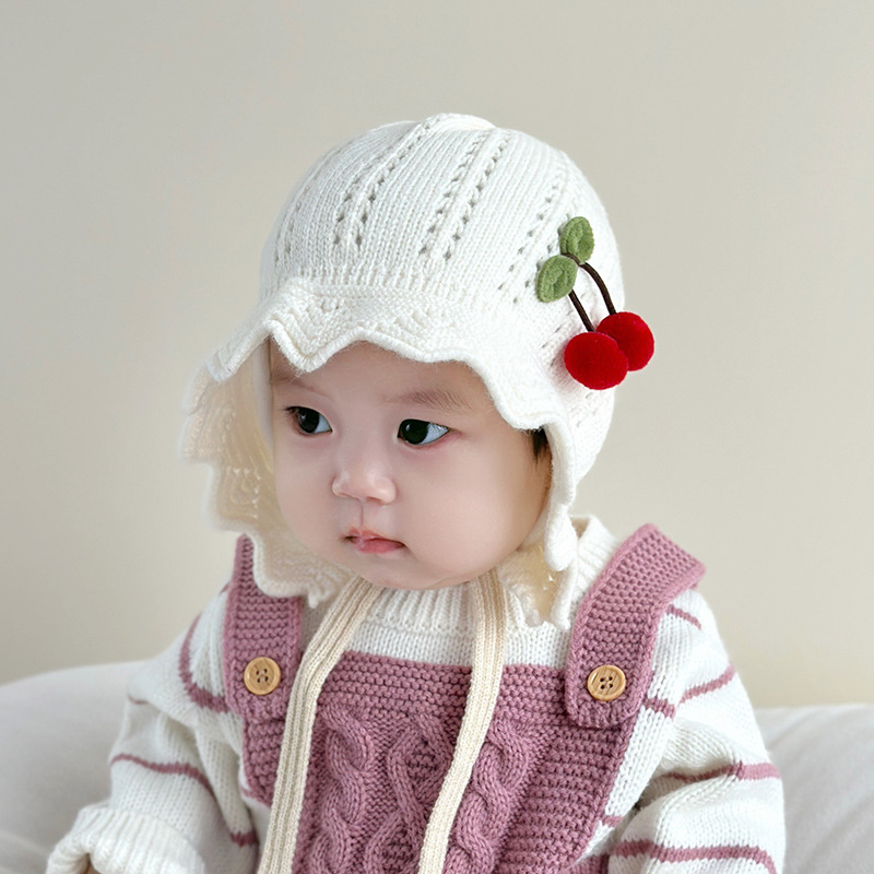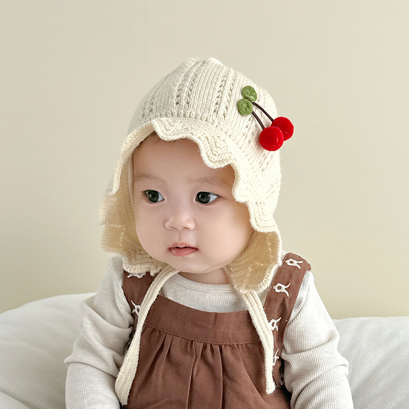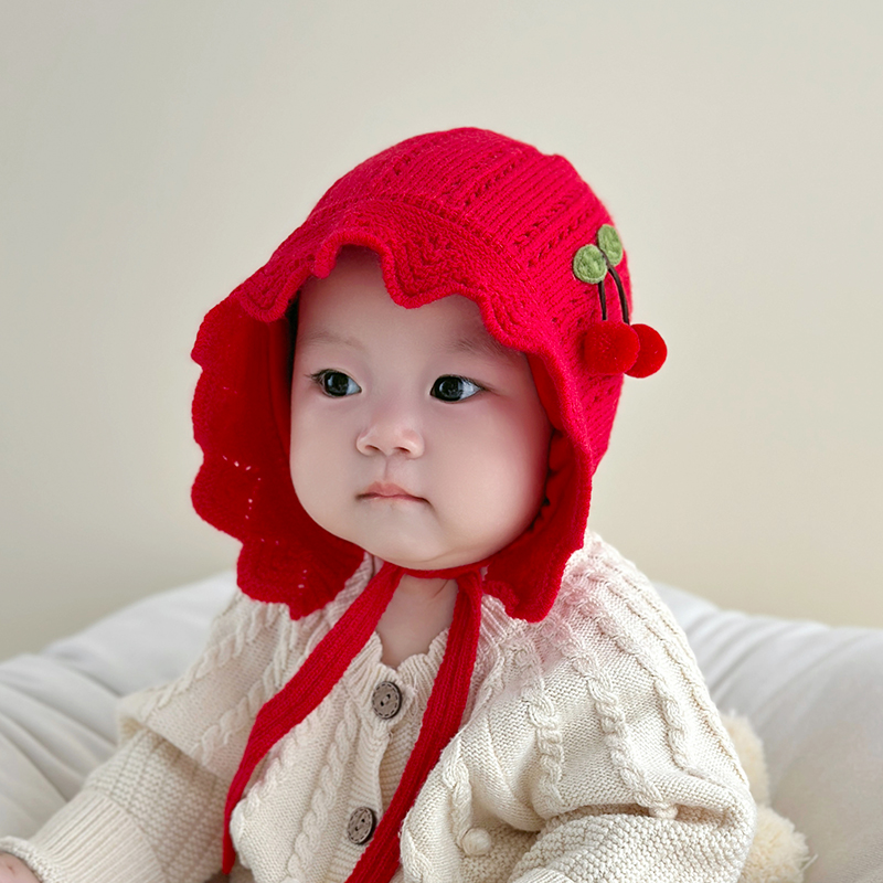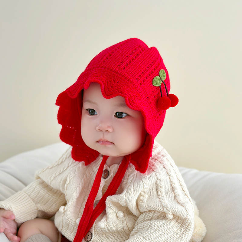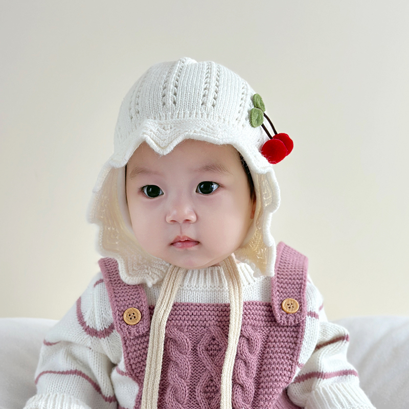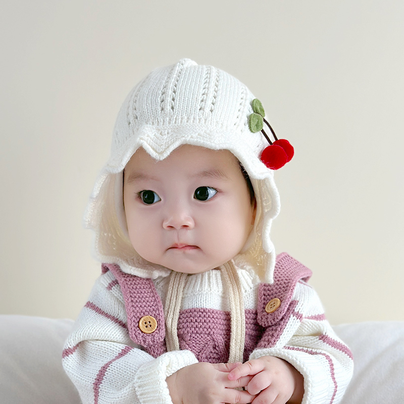 아기 양모 모자 귀여운 작은 체리 공주 모자 여성 아기 한국 니트 귀마개 방풍 따뜻한 달콤한