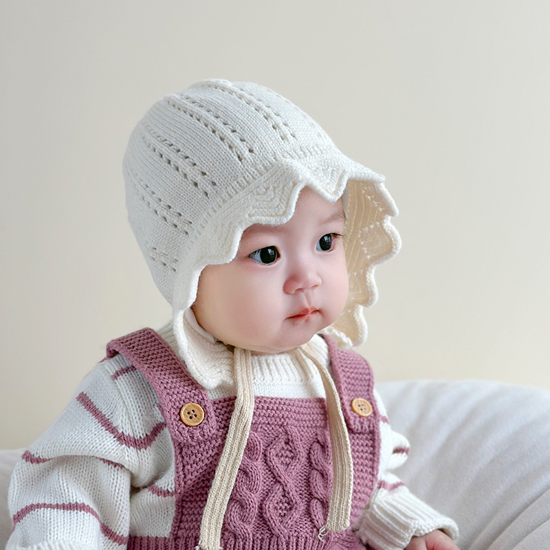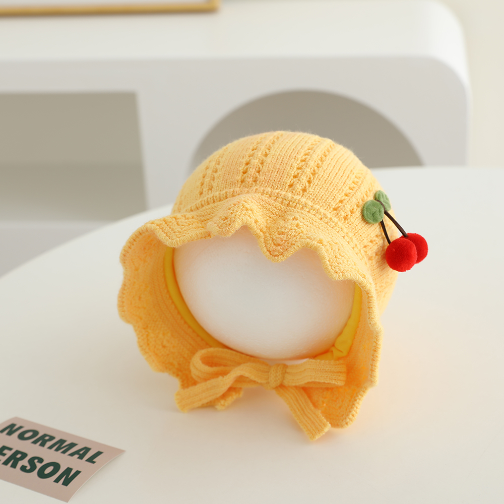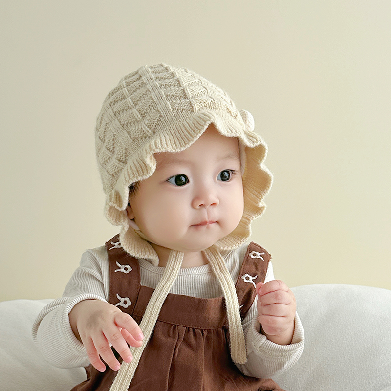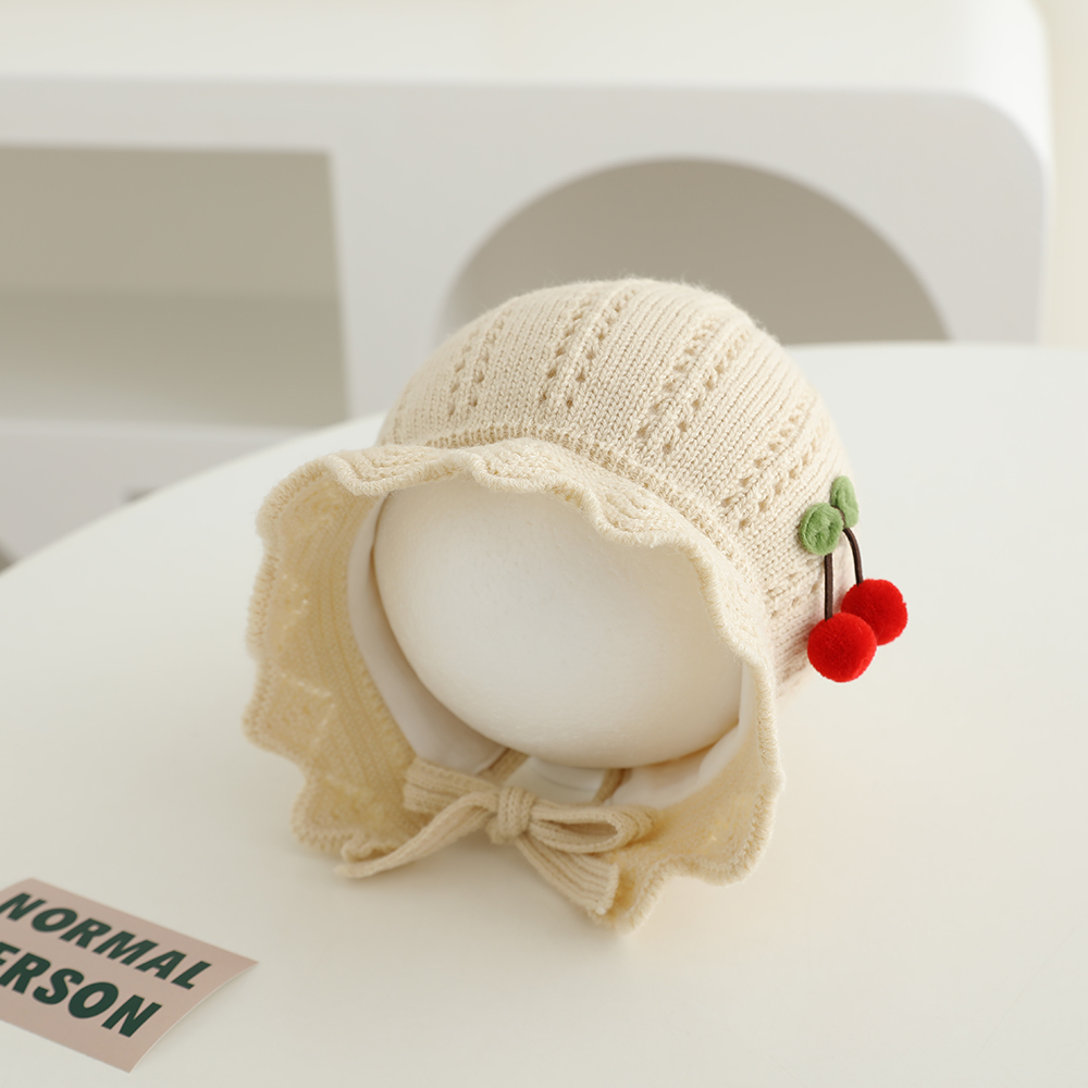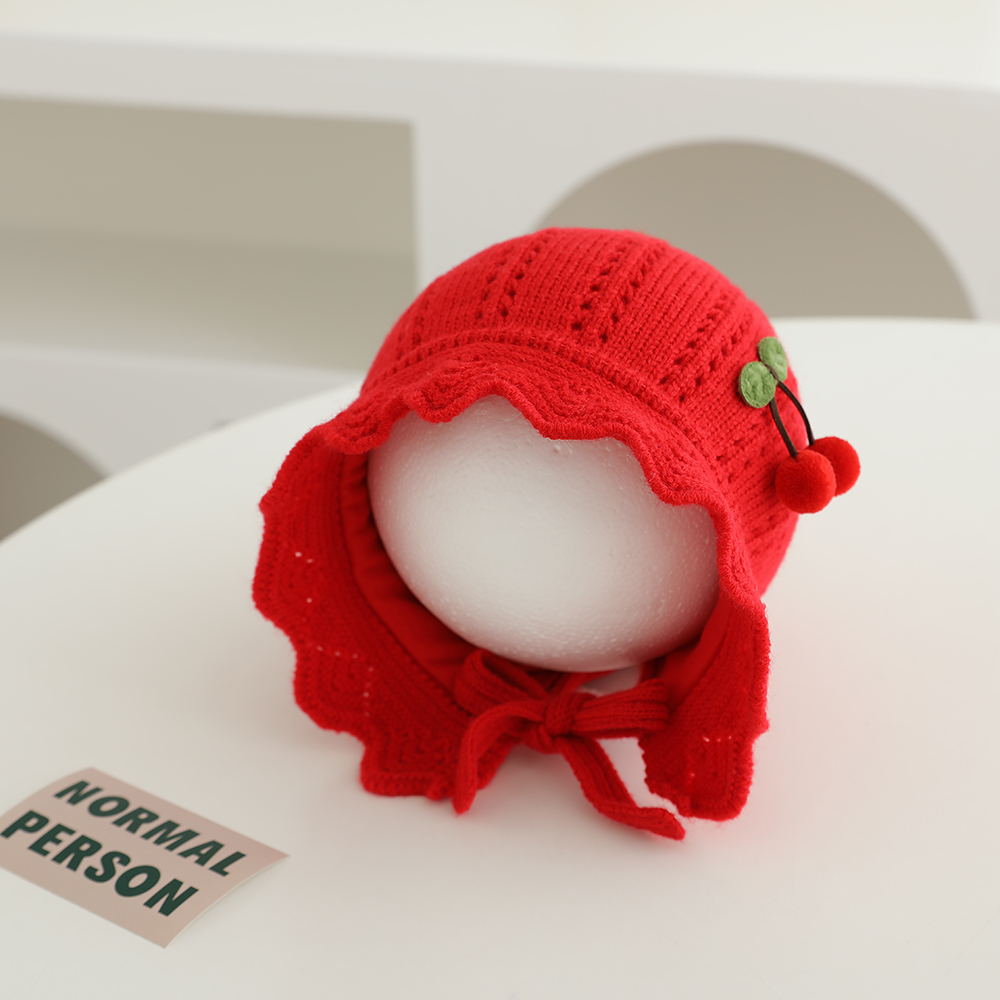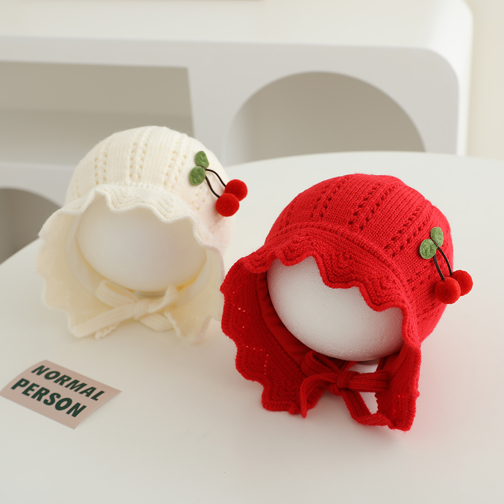 아기 양모 모자 귀여운 작은 체리 공주 모자 여성 아기 한국 니트 귀마개 방풍 따뜻한 달콤한