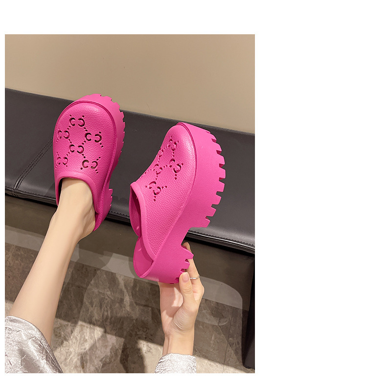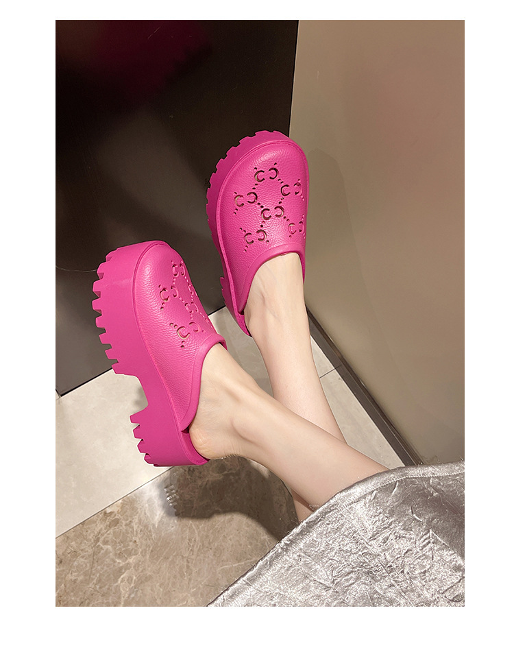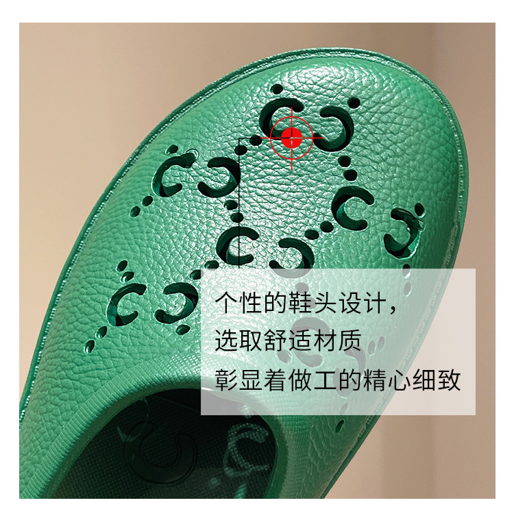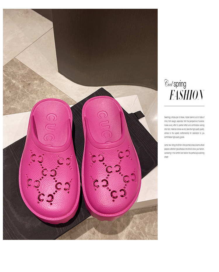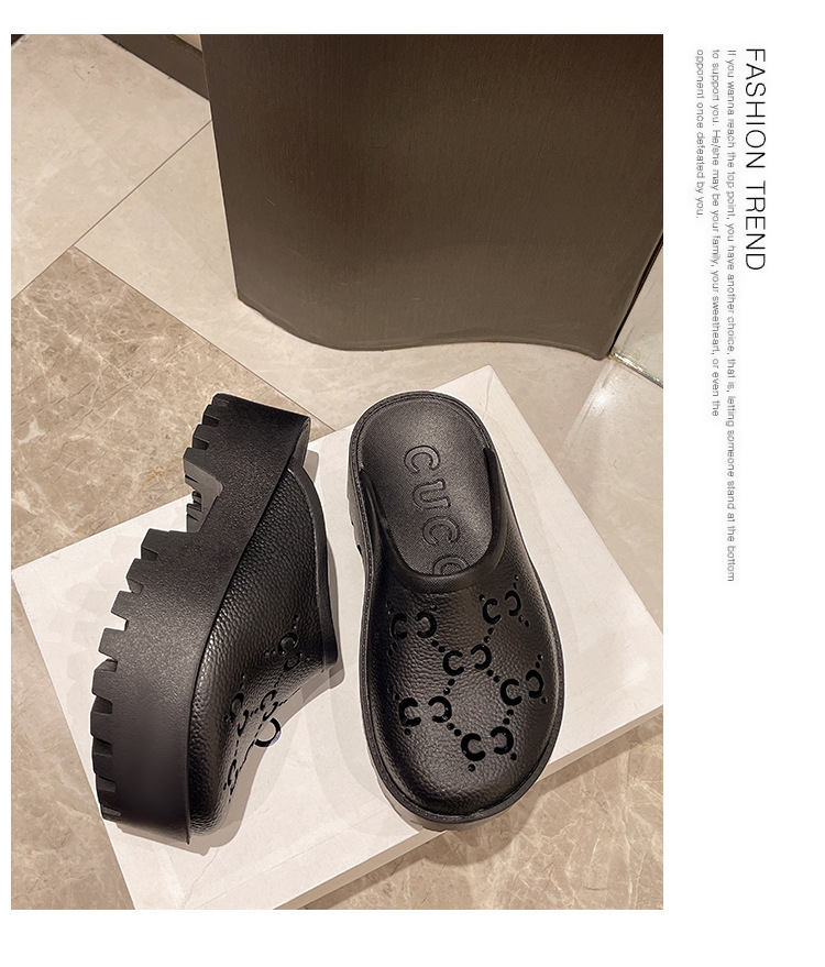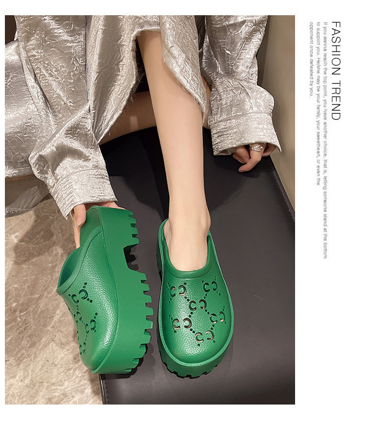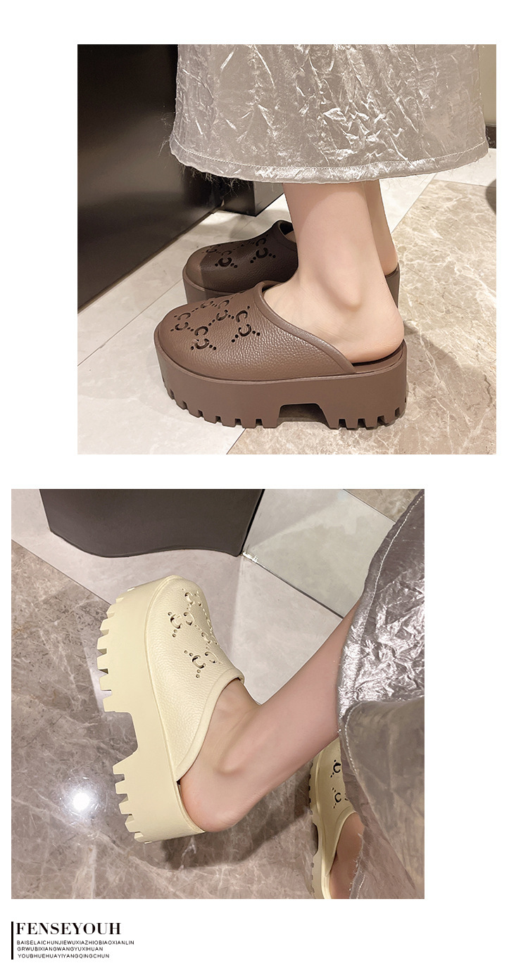 G 브랜드 2024 봄/여름 레터링 컷아웃 무광 조각 장식 앞코가 둥근 두꺼운 밑창 슬리퍼 여성용 낮은 굽스토어 가기