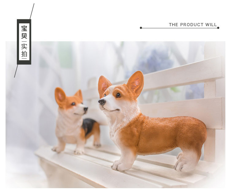 시뮬레이션 코기 개 장식품 수지 공예 강아지 거실 정원 안뜰 장식 귀여운 동물 TV 캐비닛