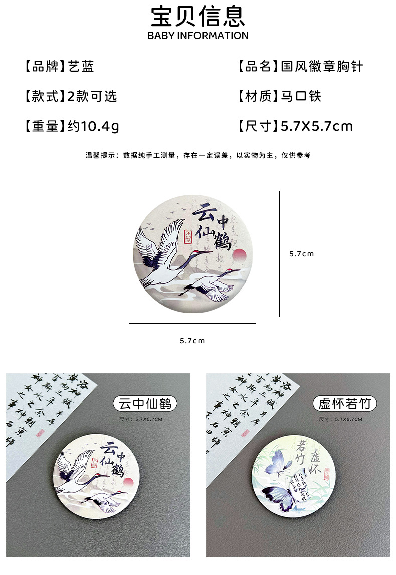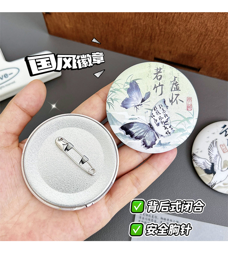 아트 블루 골동품 브로치 국립 스타일 나비 배지 고화질 틴플레이트 장식 배지 브로치 밀레 펜던트스토어 가기