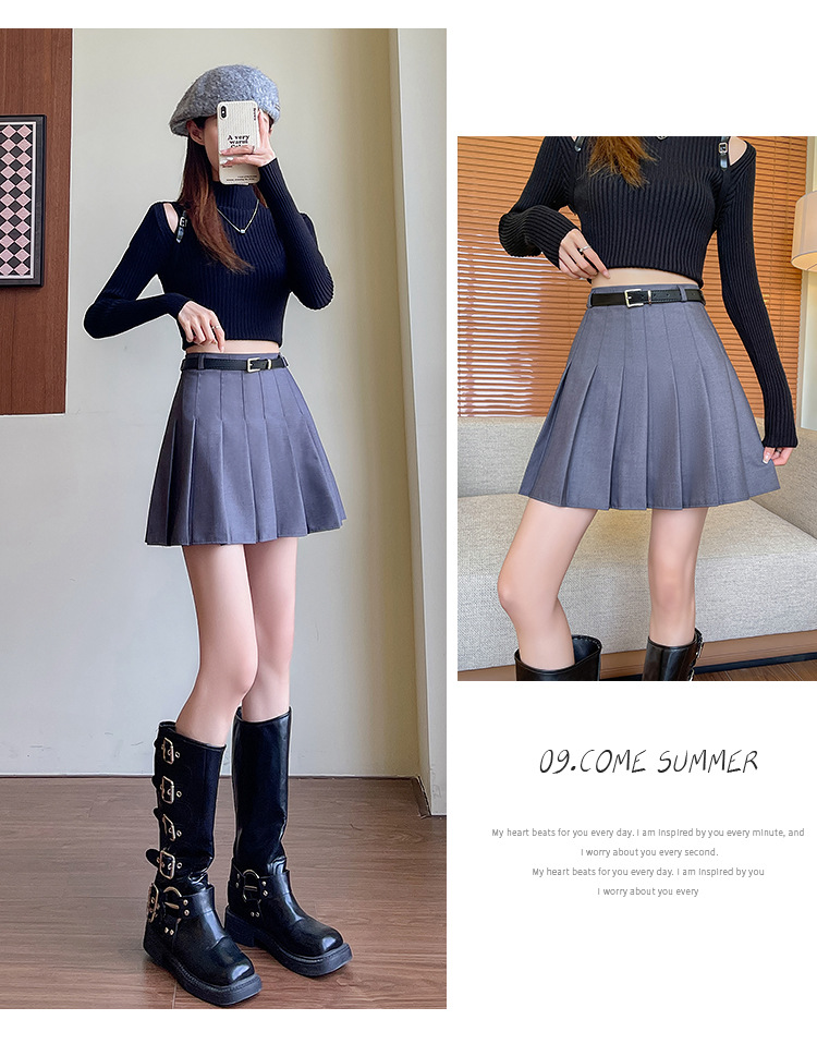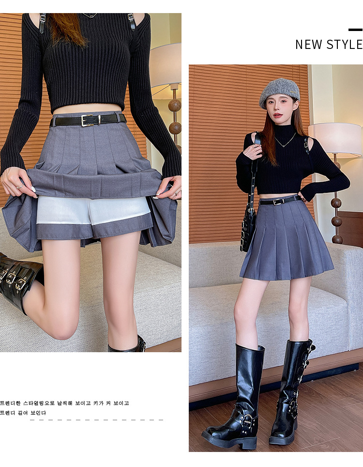 여자 새 도착 간단한 스타일 유행 올매치 주름 치마 높은 허리 슬리밍 한국 스타일 가을과 겨울 A-라인 짧은 치마스토어 가기